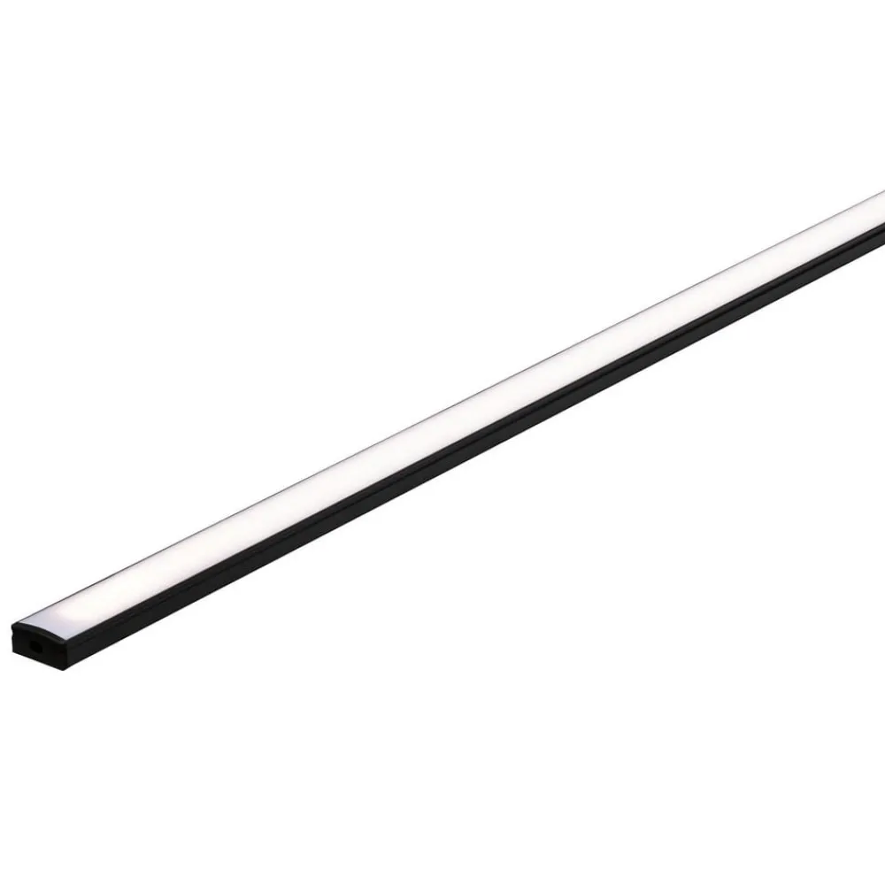 Sort bunnprofil med sateng-finish diffusor for MaxLED LED-stripe