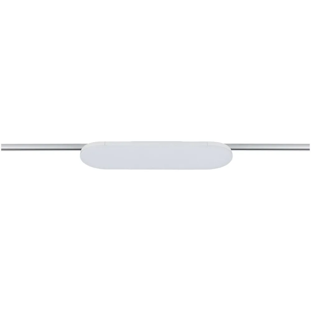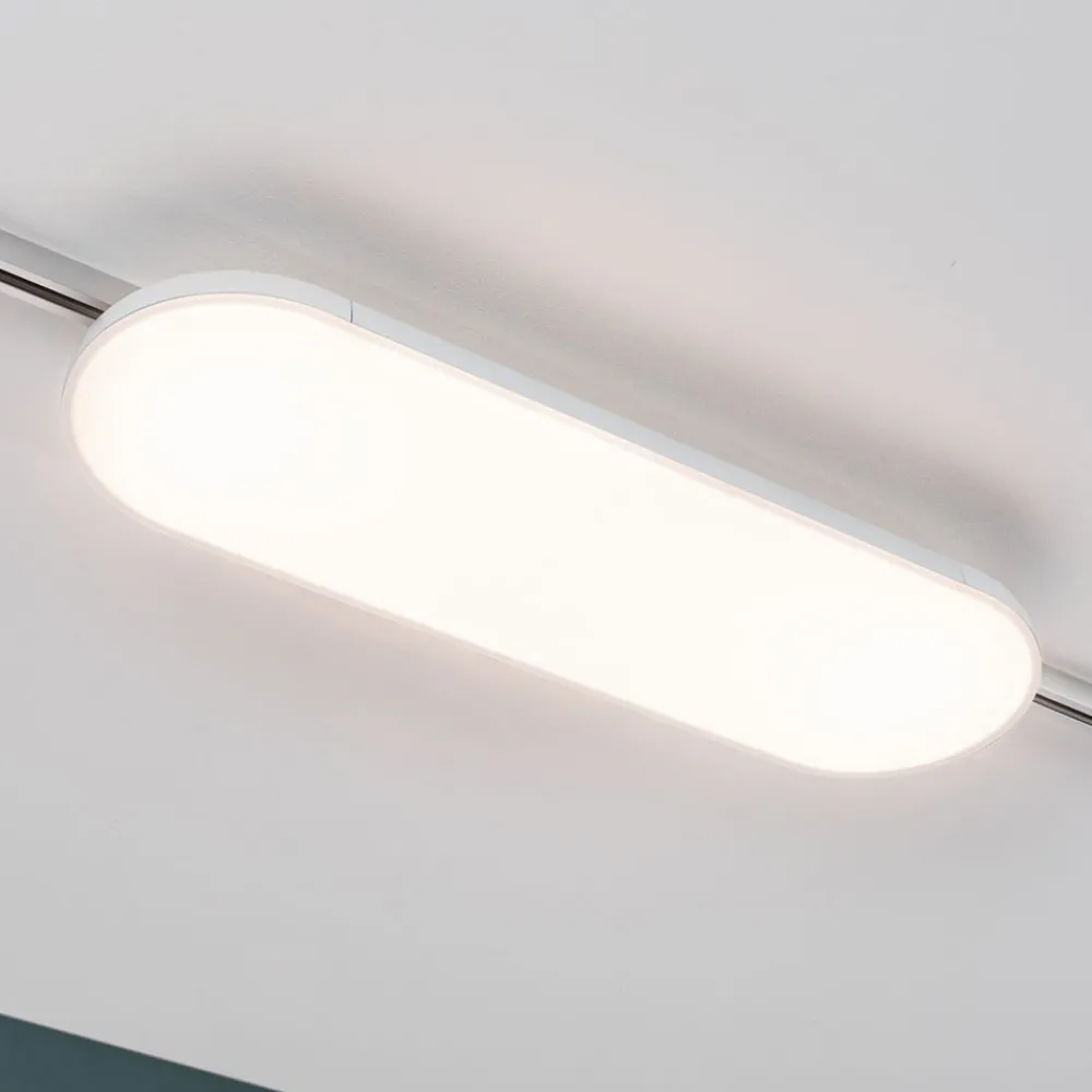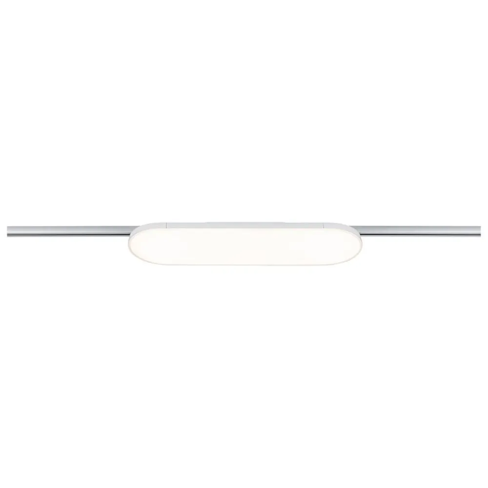 Avrundet LED-panel Deck, praktisk komponent til URail 1-krets skinnesystem Som et moderne tillegg til URail skinnesystem fra Paulmann gir dette hvite, avrundede LED-panelet Deck varmhvitt, flatt lys og kan justeres i lysstyrke med mange dimmere. Den flytende formen og den jevne overflaten kombinert med en diskret, flat metallramme skaper et harmonisk belysningsobjekt som kan integreres i en rekke ulike interiørstiler.