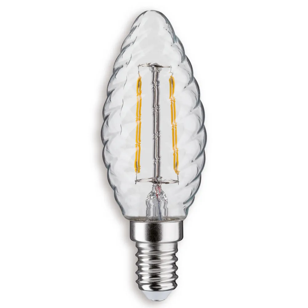 E14 2,6W LED-glødelampe med vridd, klart glass