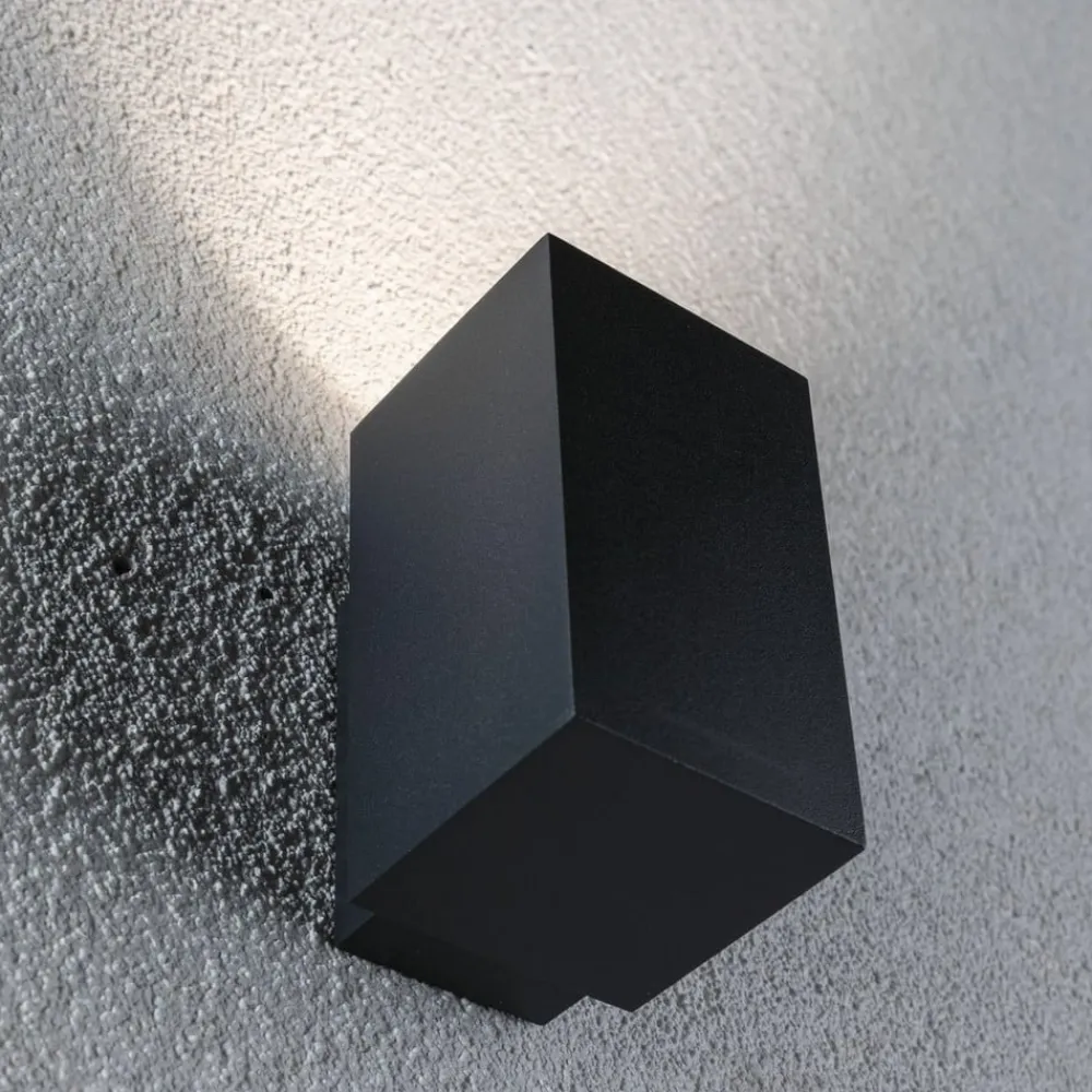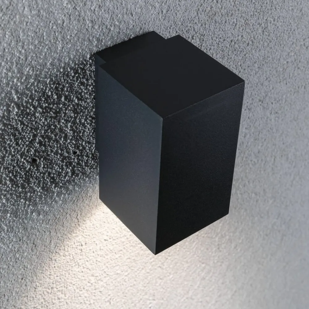 En kuboid kropp laget av aluminium og et sirkulært lysuttak med et satinert deksel, bak som varme hvite, energieffektive og langvarige lysdioder er skjult – det er LED-utendørs vegglampen Flame. Den passer til nesten alle moderne uteområder og beriker den med en 75 ° bred lyskegle. Avhengig av krav kan dette rettes opp eller ned, slik at enten en lys aksent på veggen over eller orienteringsbelysning oppnås for området rett ved siden av fasaden.
