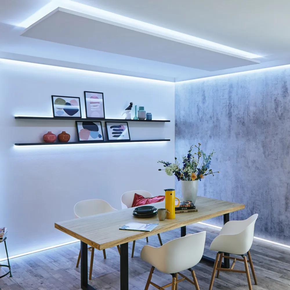 Med denne stripe kan et eksisterende MaxLED LED-stripe basissett utvides og forlenges etter behov. stripe er enkel å montere takket være den selvklebende undersiden, og stripe kan også forkortes til ønsket lengde.