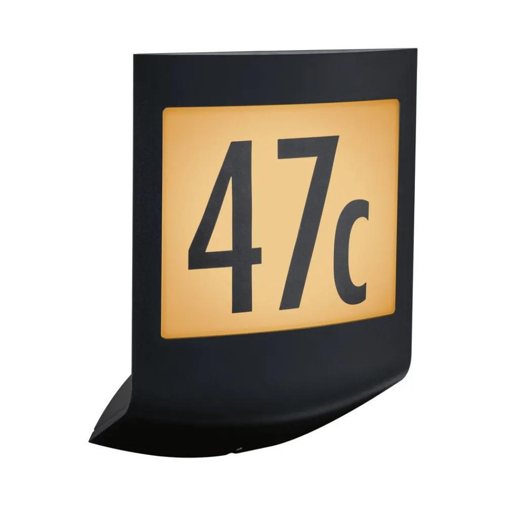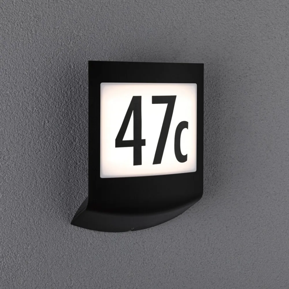 Dimbar LED-husnummerlampe Padea med skumrings- og bevegelsessensor på Basis av Basis, varm CCT Ett husnummer, mange fu…