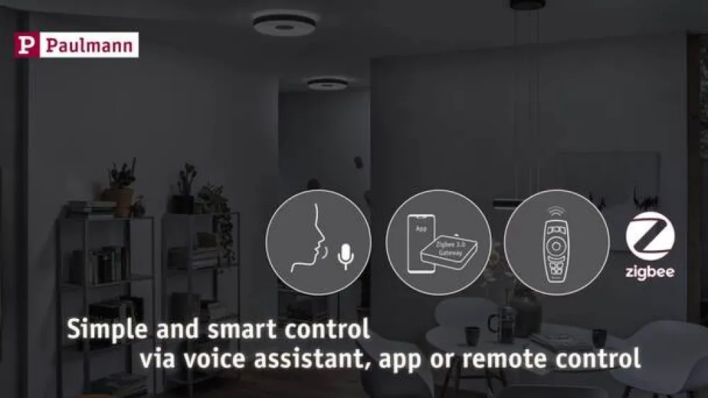 I den flate, runde lysskjermen til Puric Pane LED hengelys er det montert varmhvite LED-er både nedover og oppover, slik at i i tillegg til direkte belysning av bordflaten skaper også indirekte rombelysning. Puric Pane er ideell for bordbelysning og partiturer med moderne teknologi, fordi pendellampen er kompatibel med ZigBee 3.0 radioprotokollen. Den kan derfor integreres i alle smarthussystemer basert på denne trådløse standarden. Med nødvendig utstyr kan den hengende lampen deretter styres med talekommando eller kan styres via en app med smarttelefon eller nettbrett.