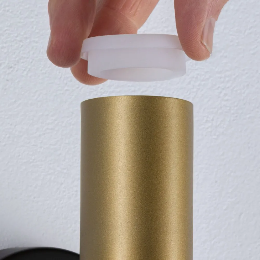 Ravi vegglampe med E27-kontakt, uten skjerm Ravi er en vegglampe for mange områder, inkludert baderommet, takket være IP44-klassifiseringen. Det runde veggfestet har en brakett som det er festet en E27-sokkel på. Denne kan utstyres med en lyskilde på opptil 60 W. Armaturens utseende kan endres avhengig av valg av lyskilde. Bildene viser armaturen med lyskilder fra blant annet Paulmanns Metallic Glow-serie. Disse er ikke inkludert i leveransen, men kan bestilles direkte. Ravi vegglampe kan brukes som en enkelt lampe, men også som et par montert til høyre og venstre for et speil eller et bilde for å skape vakre lyseffekter. Lampen kan monteres med fatningen vendt oppover eller nedover.