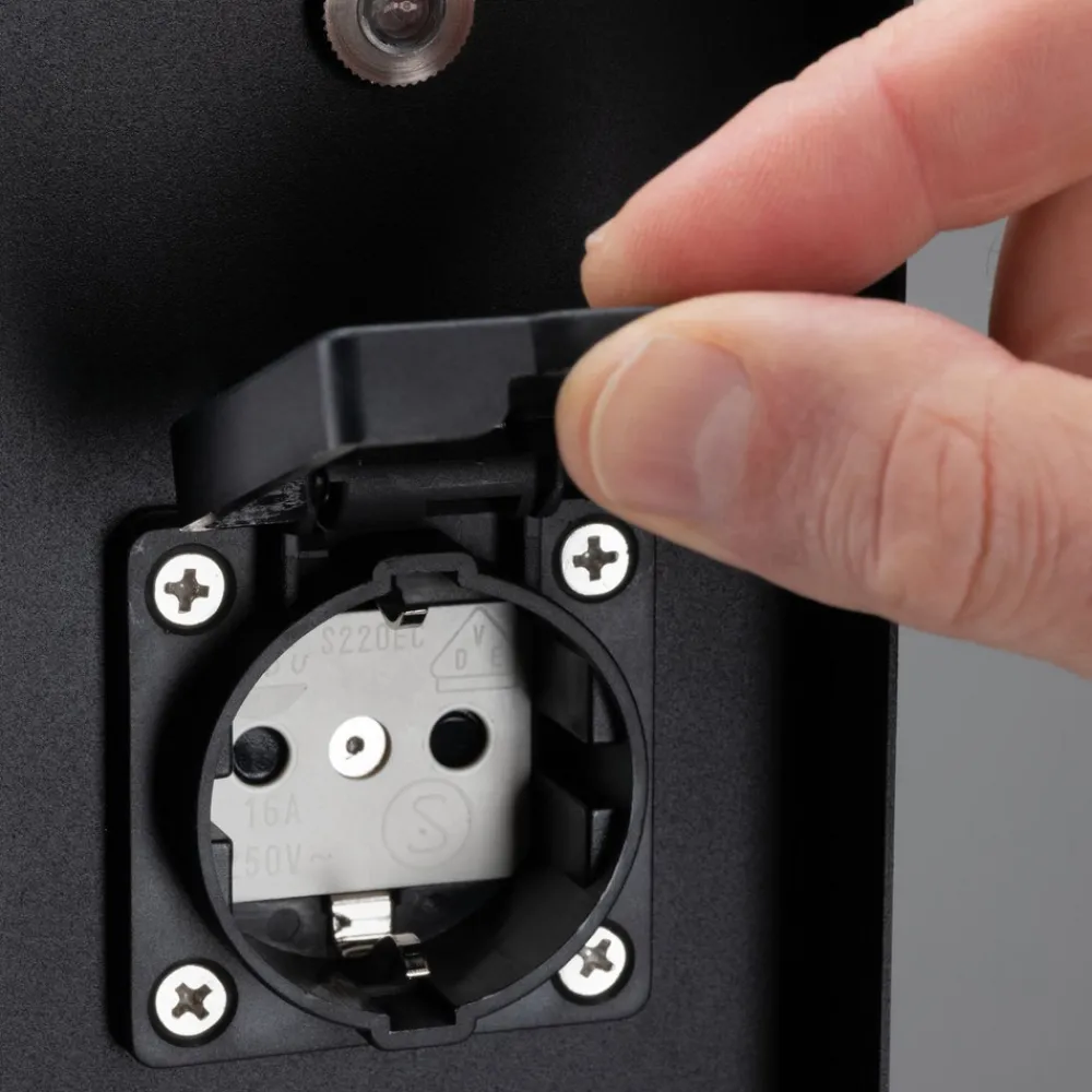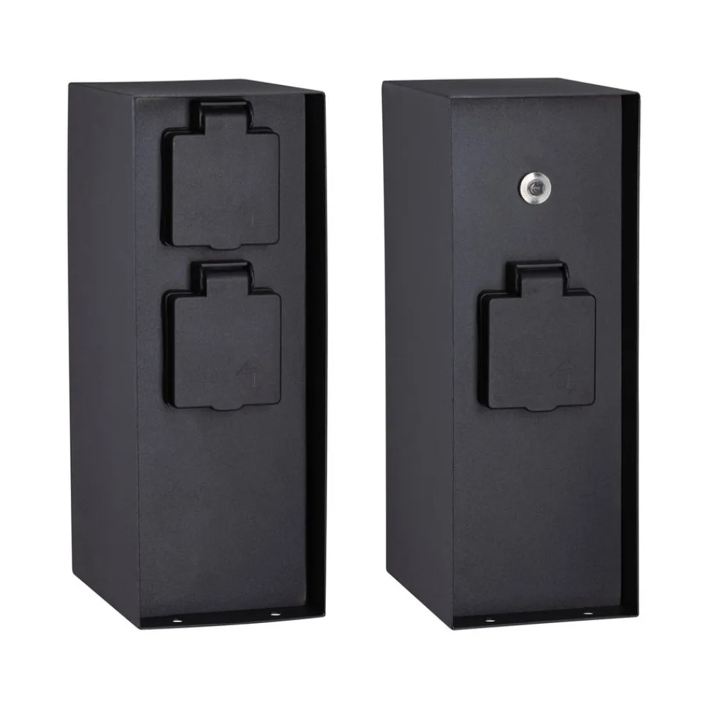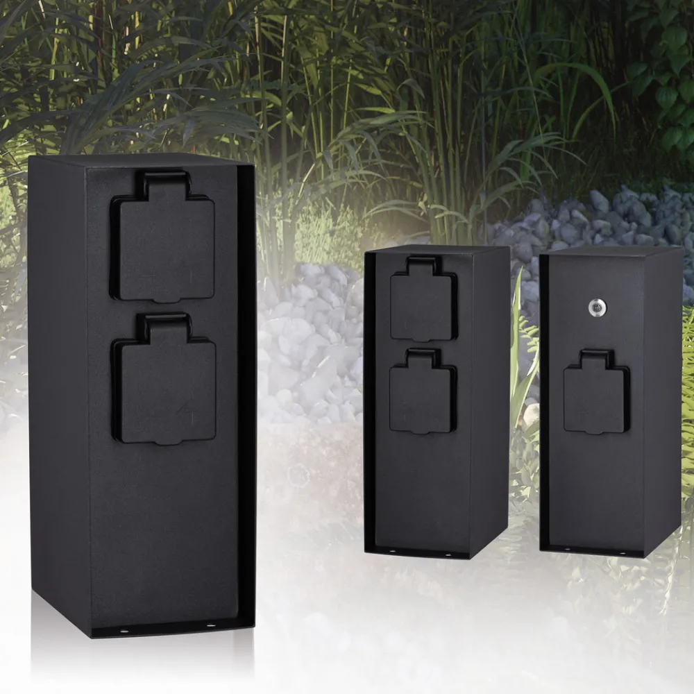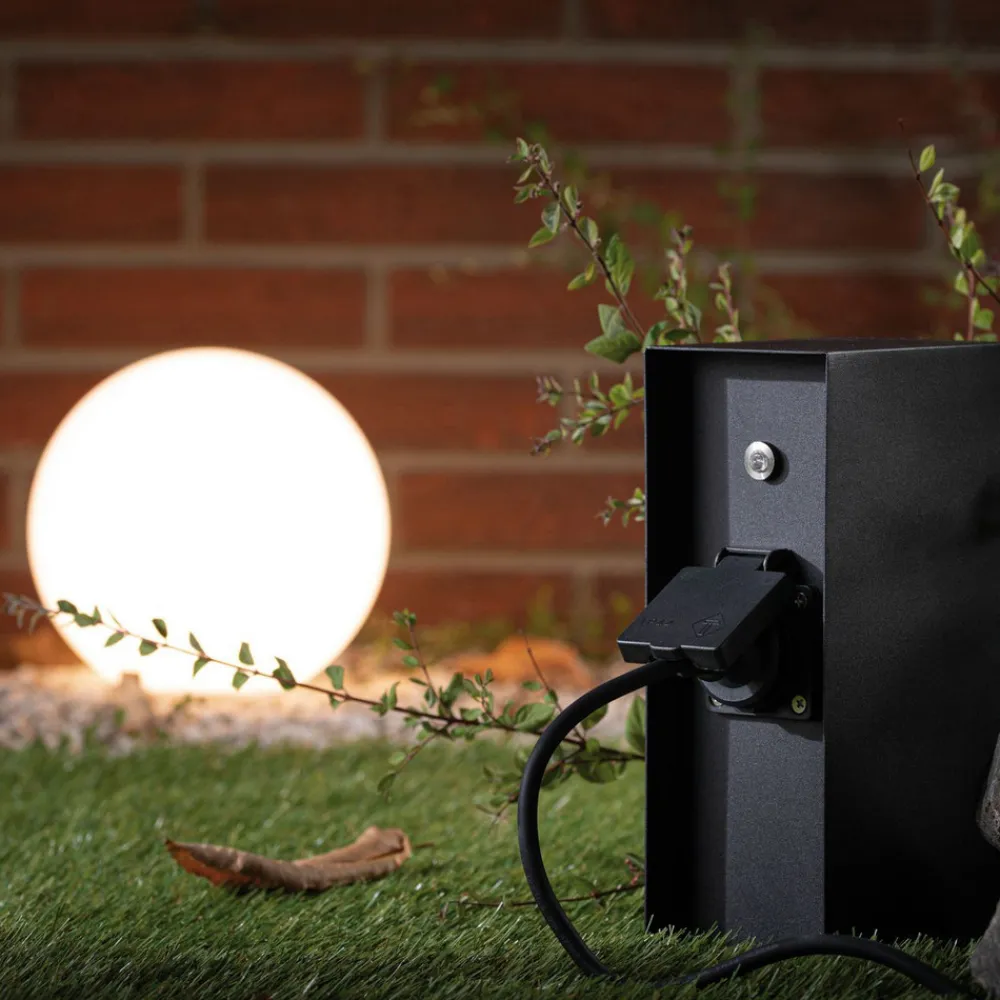 Rio-stikkontaktsøyle med tre Schuko-stikkontakter og skumringssensor Rio-stikkontaktsøylen med antrasittfarget belegg er laget av rustfritt stål og er ikke bare utstyrt med tre jordede stikkontakter, men også med en skumringssensor. Den er derfor perfekt for tilkobling av hagebelysning og slår seg automatisk på i skumringen og av igjen når det blir lyst – kapslingsklasse IP44