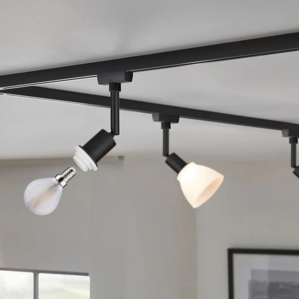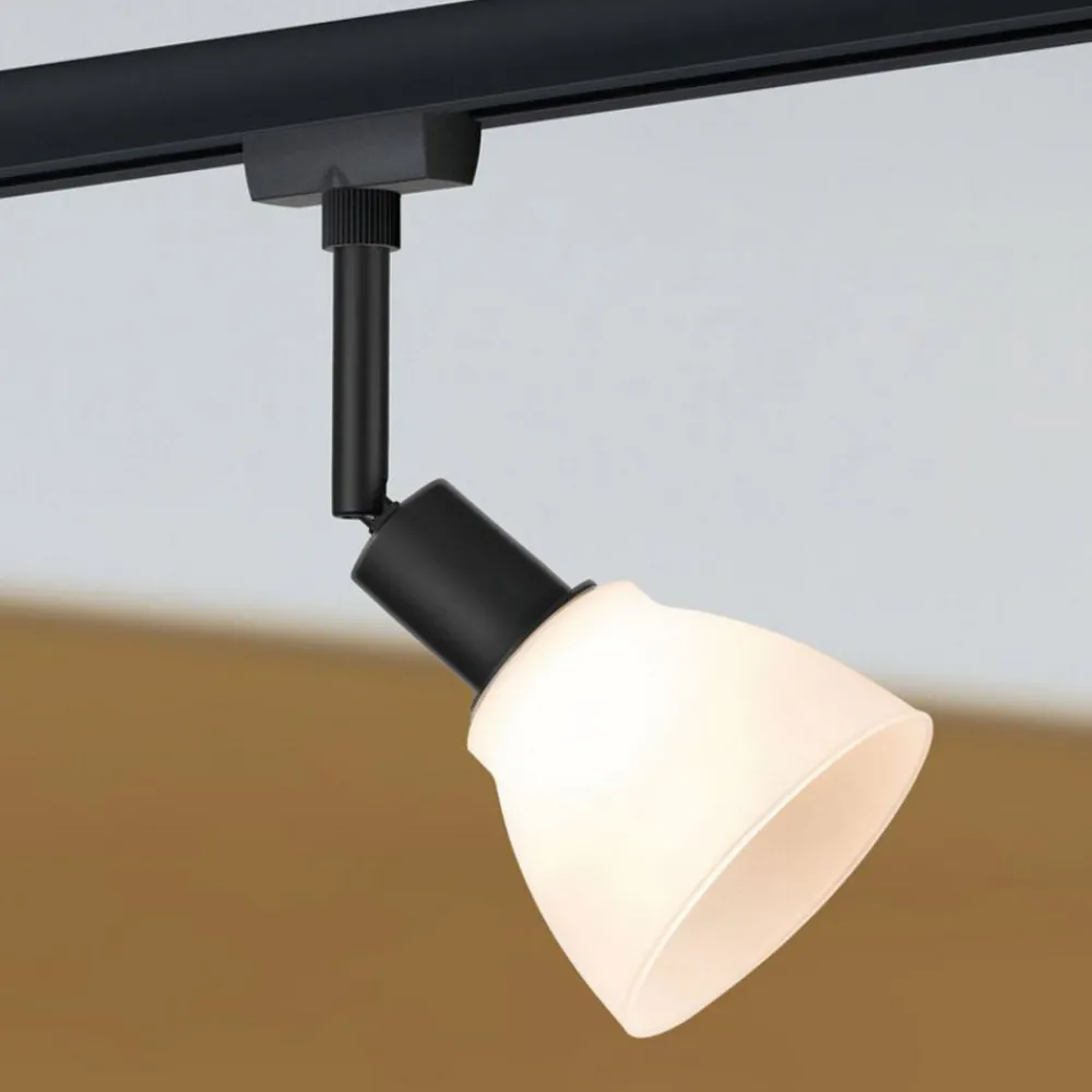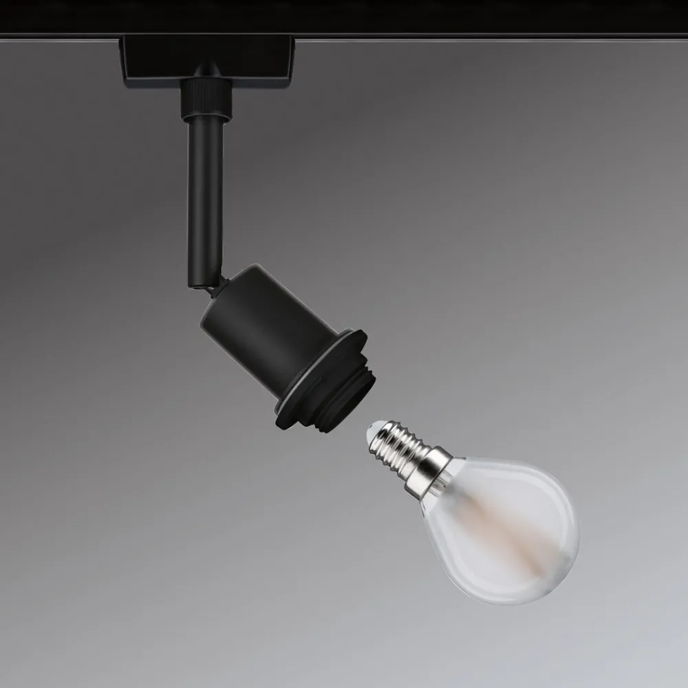 URail DecoSystems Spot gir en treffsikker lysstråle URail DecoSystems Spot retter lyset nøyaktig dit du vil ha det. Spoten er festet til en kort brakett og er gjennomgående malt i matt svart. Fatningen er utstyrt med en E14-pære. Dimbarheten avhenger av valg av pære. Spoten kan også utstyres med en DecoSystems lampeskjerm for dekorativ design.
