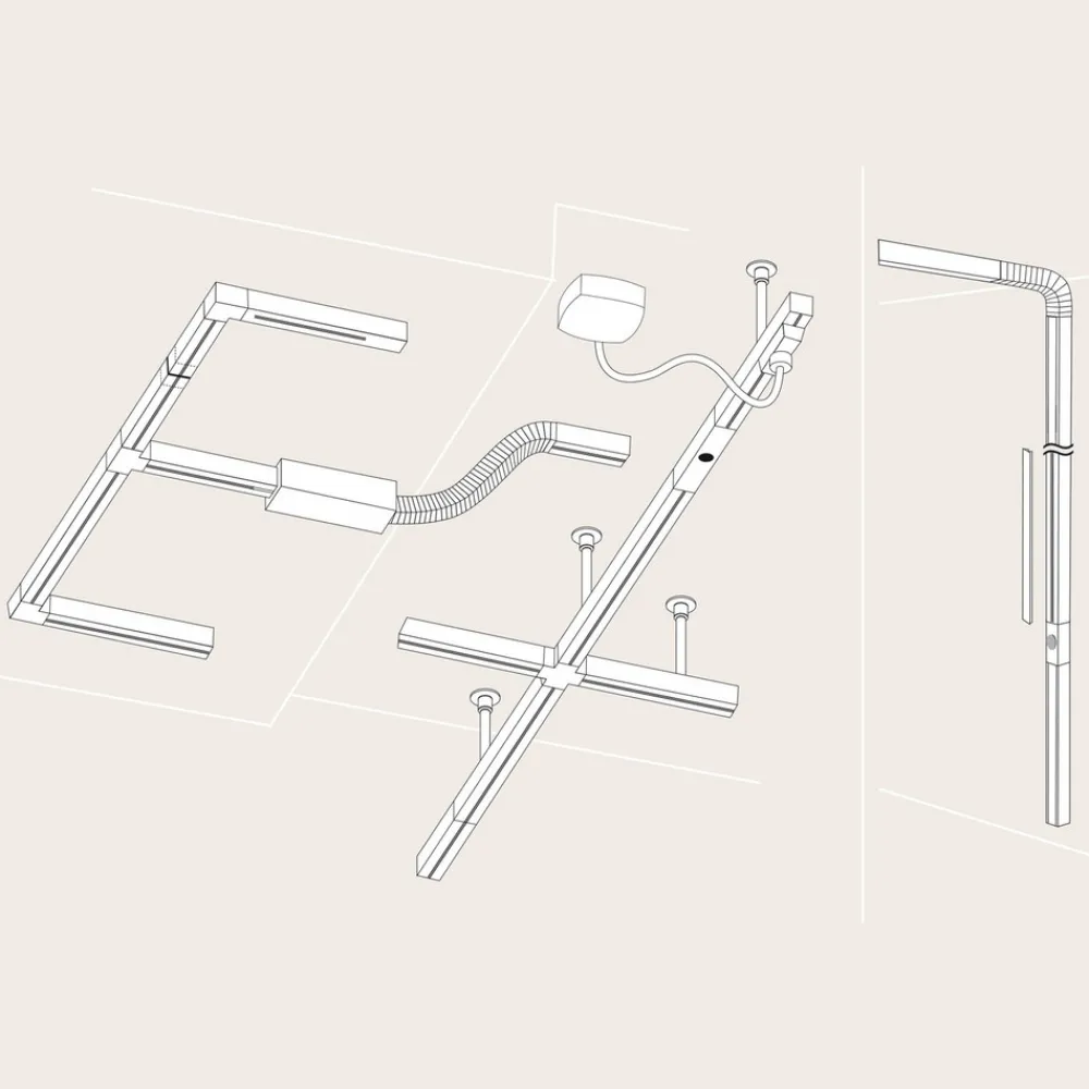 Den leddede URail-koblingen kan koble sammen to URail-skinner og kan justeres til venstre eller høyre i en vinkel på opptil 90°. Dette betyr at selv vanskelige hjørner kan mestres. Den har et enkelt plug-in system og brukes til å bygge bro over korte avstander.