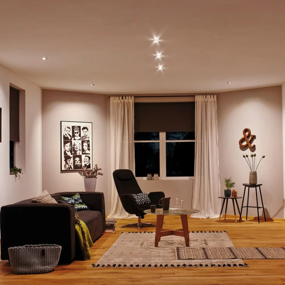 Etter vellykket installasjon kan de innfellingsspot nå integreres i et passende og kompatibelt smarthussystem, for eksempel Philips Hue. Det er derfor mulig å styre LED-modulen med en app eller en stemmeassistent, samt trinnløs dimming.