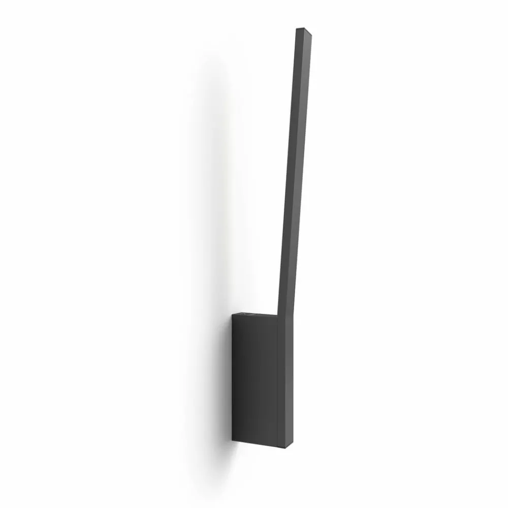 Smart betjening, enkelt design, varierte lysmuligheter – Liane er en gjennommoderne vegglampe. Den høye, rektangulære stangen er utstyrt på baksiden med en White and Color Ambiance LED-stripe. Dette gir en aksent på veggen og indirekte belysning – valgfritt i varmhvitt til dagslys eller farget lys.