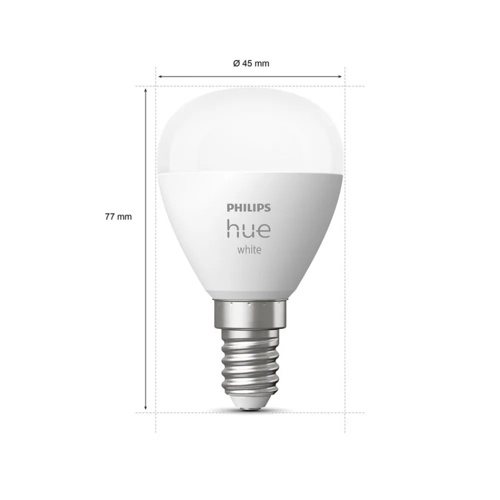 LED -falllampen fra Hue White -serien kan styres enten via integrering i Hue Bridge eller via Bluetooth uten ekstra tilbehør. Den erstatter enkelt konvensjonelle lyskilder og kan gjøre ethvert lys med en E14 fatning til et smart, kontrollerbart lyselement. Med sin varme hvite lysfarge kan den alltid skape riktig stemning takket være justerbar lysstyrke.