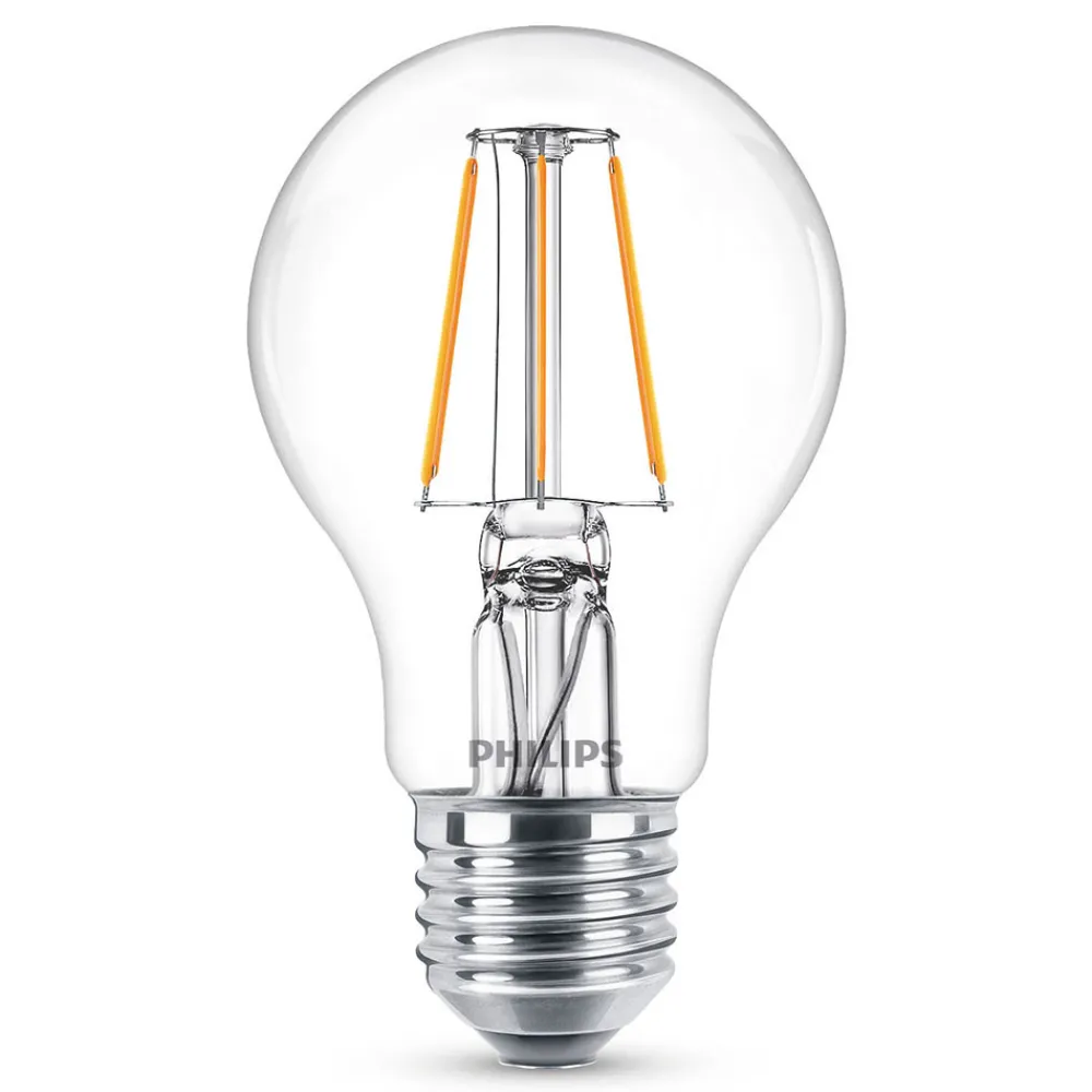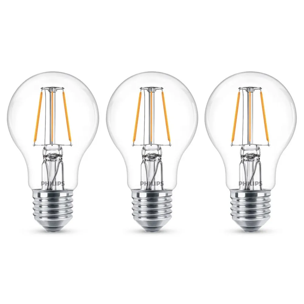 I en 3-pakke – klar E27 LED-lampe A60 4,3 W med varmhvit lysfarge (2700 K) og glødetrådoptikk