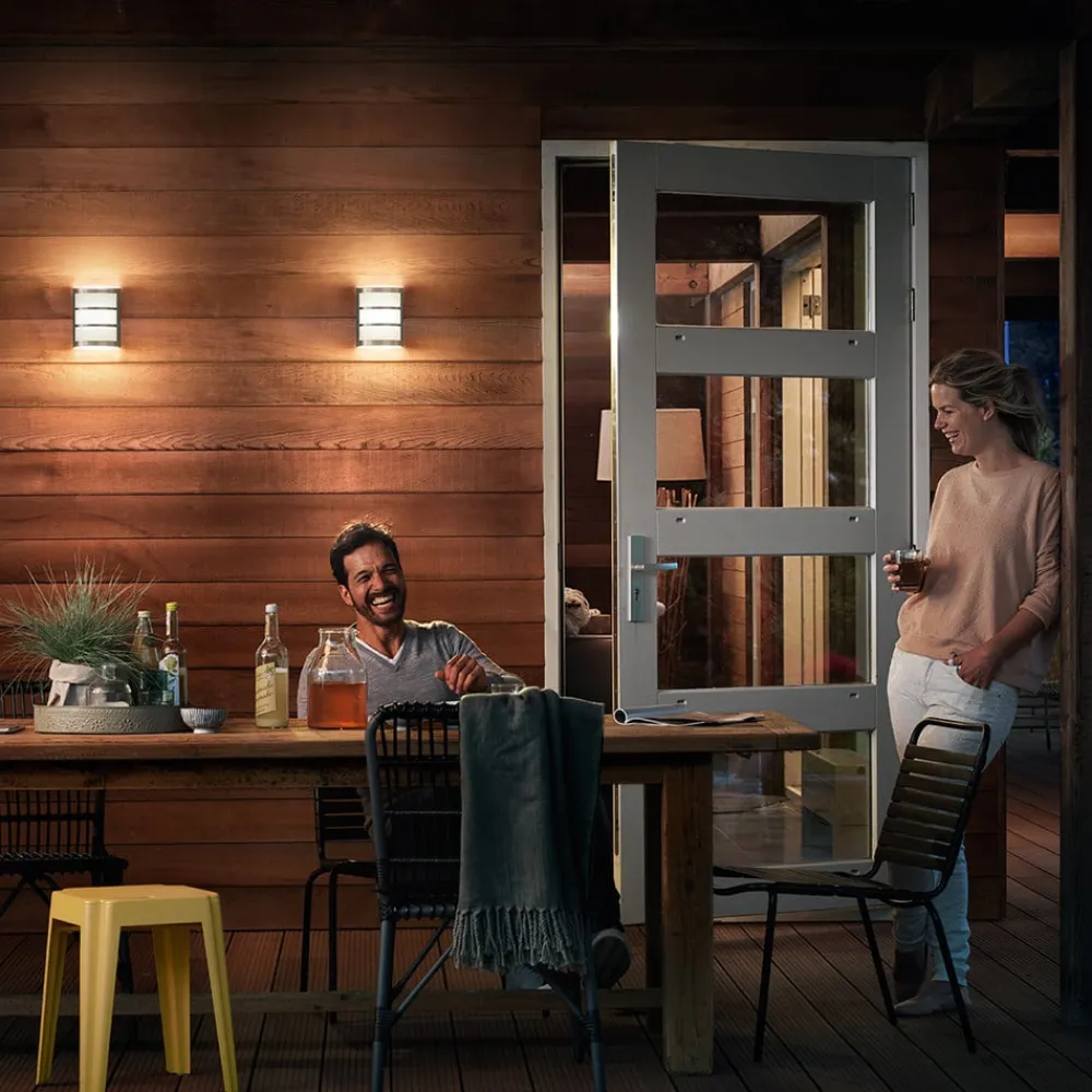 Stål er et materiale som imponerer med sin høye renhetsgrad. Takket være dette er det spesielt værbestandig og holdbart. Siden utendørs LED-vegglampen Python også er laget av dette materialet, har den alle disse fantastiske fordelene. Lyset stråler ikke bare fremover, men også oppover og nedover gjennom tre separate segmenter. Dermed oppnår Python et vidstrakt lys som gir omgivelsene varmhvit belysning. Pærene er integrerte LED-pærer, som har den fordelen at de bruker svært lite strøm.