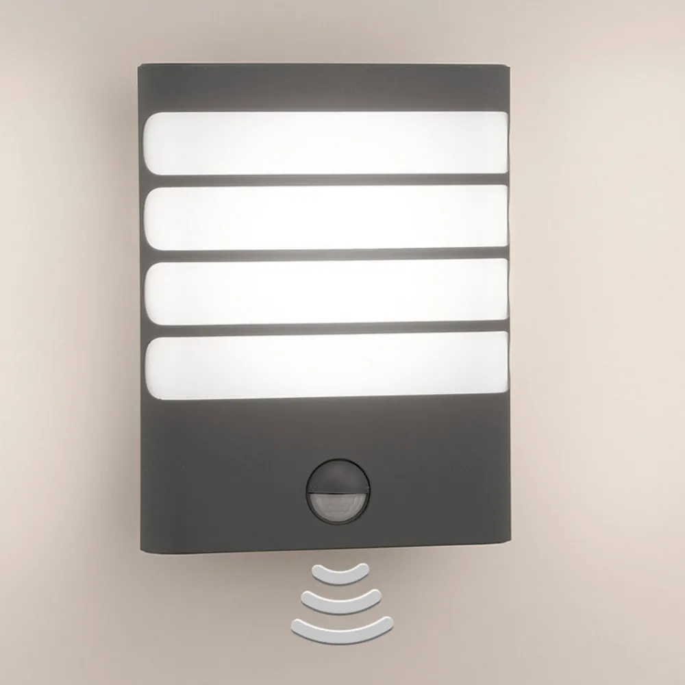 Det antrasittfargede lyset gir praktisk hjelp med den integrerte bevegeslessensoren. Så snart man kommer nær den gir den automatisk nok lys og sikkerhet, og derfor er LED-lyset spesielt praktisk i inngangspartiet. Slik finner du husnøkkelen raskt. Den er værbestandig med kapslingsgrad IP44. Utevegglyset har en enkel deising og passer derfor godt i omgivelsene. Lampeskjermen er oppdelt med tverrstriper og tar seg svært godt ut. Behagelig belysning med integrert 3W LED-pære.