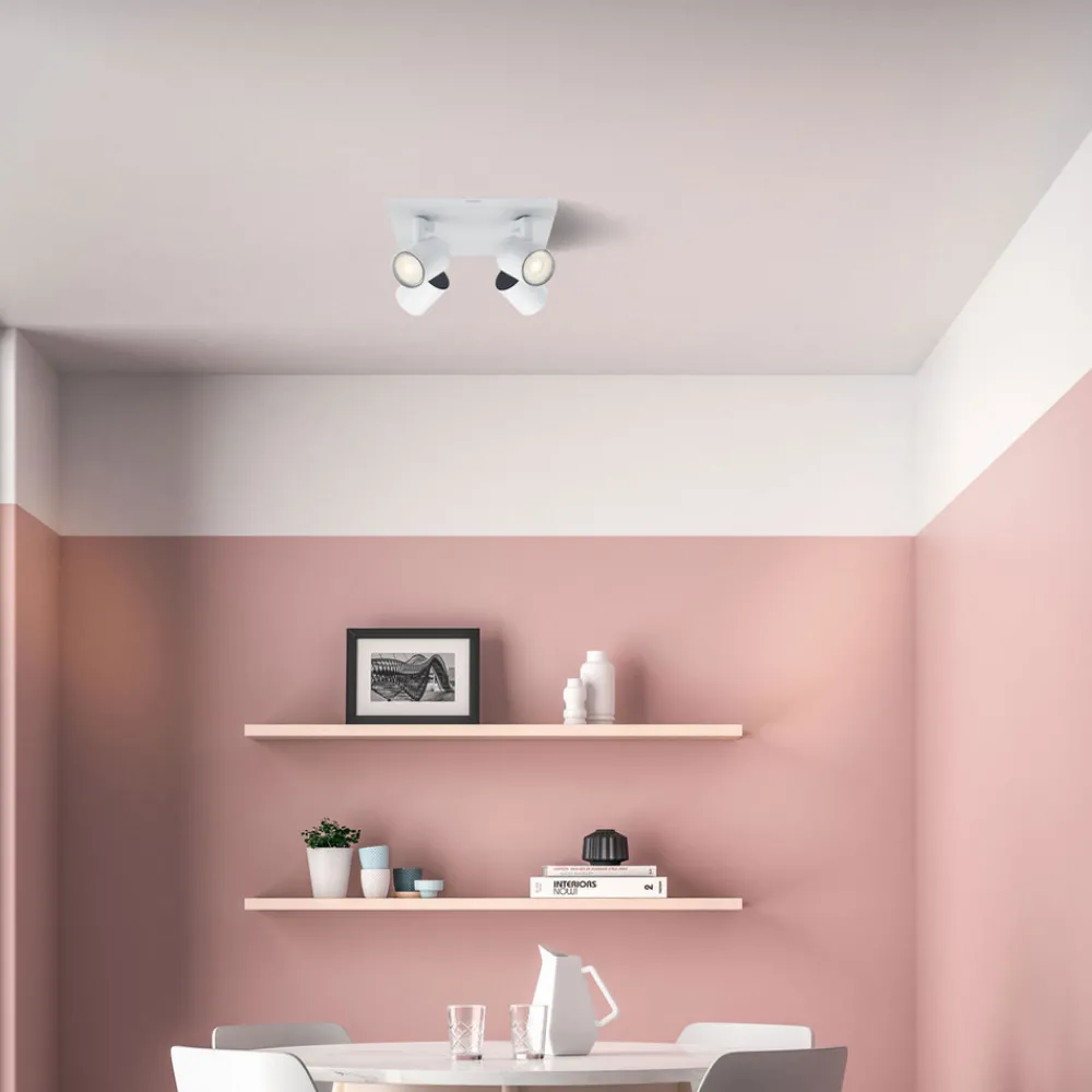 Den matte, hvite, firkantede LED-taksensoren Runner er en lyskilde som kan brukes til grunnleggende belysning i mange rom, og takket være LED-lampene (GU10) som er inkludert, lyser alle rom i en varmhvit lysfarge på en energibesparende måte. De fire justerbare spottene som er plassert i hjørnene i den kvadratiske dekkplaten, gjør det mulig å fremheve forskjellige områder i rommet med lys.