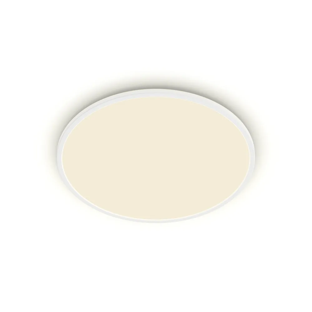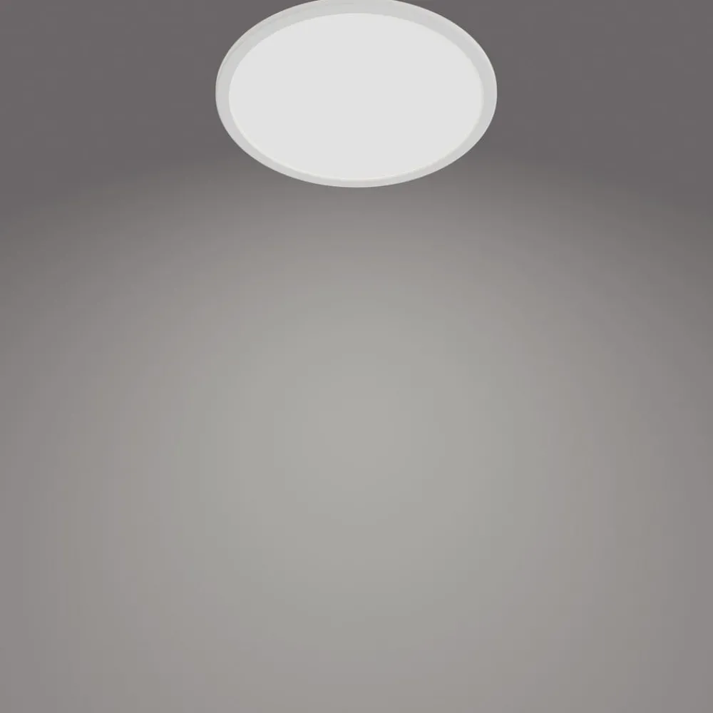 LED-taklampe Superslim IP44 rund, dimbar via lysbryterDet universelle hvite lyset til denne runde LED-taklampen kan byttes til tre lysstyrkenivåer (100%, 50% eller 10%) via lysbryteren.Armaturen oppfyller EyeComfort-kriteriene utviklet av Philips. Den gir et behagelig lys som er skånsomt for øynene. Takket være beskyttelsesklasse IP44 er den perfekt egnet for baderom og andre fuktige områder.med minnefunksjon- også egnet for veggmontering