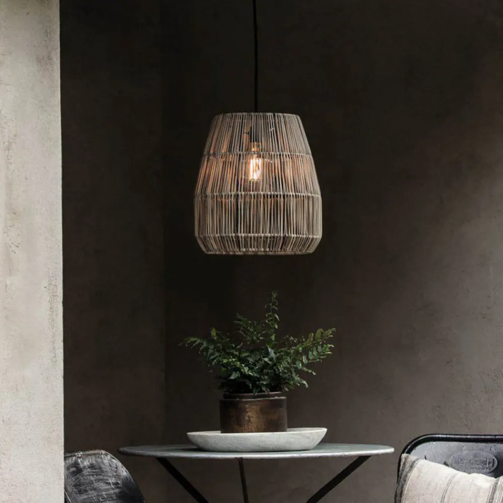 Saigon pendellampe for utendørs bruk med 2,5 m kabel og støpsel Skjermen på Saigon utendørs pendellampe er laget av værbestandig plast med rottingutseende. Den vevde strukturen skaper et vakkert lys. Saigon leveres inkludert et opphengssett med veggkontakt – beskyttet mot ugunstige værforhold med kapslingsgrad IP44