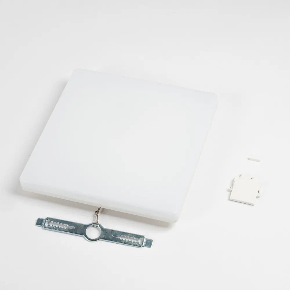 Moderne Artin LED-taklampe i kvadratisk design med CCT-funksjon og bevegelsessensor Artin LED-taklampe er en moderne belysningsløsning for ulike oppholdsrom. Den kan monteres både i gangen og på badet, siden den er fuktbestandig takket være IP65-klassifiseringen. Armaturen er laget av slitesterk plast og har en kantet form. Det tidløse utseendet i hvitt kan integreres i mange interiørstiler uten å trenge seg frem. En innebygd DIP-bryter på armaturhuset sørger for at lysfargen kan endres i tre trinn: varmhvit (3000 K), universalhvit (4000 K) og dagslys (5700 K), og en annen DIP-bryter gjør det mulig å stille inn lysstyrken i to trinn. I tillegg er det innebygd en bevegelsessensor i armaturen, noe som viser seg å være svært praktisk i hverdagen. Artin-armaturen kan dermed dekke mange individuelle behov og egner seg derfor også godt til bruk i næringsbygg. Tekniske data: – integrert bevegelsessensor – CCT-funksjon via DIP-bryter: 3 000 K / 4 000 K / 5 700 K – kapslingsklasse IP65 – spredningsvinkel 120° – slagfasthet IK08