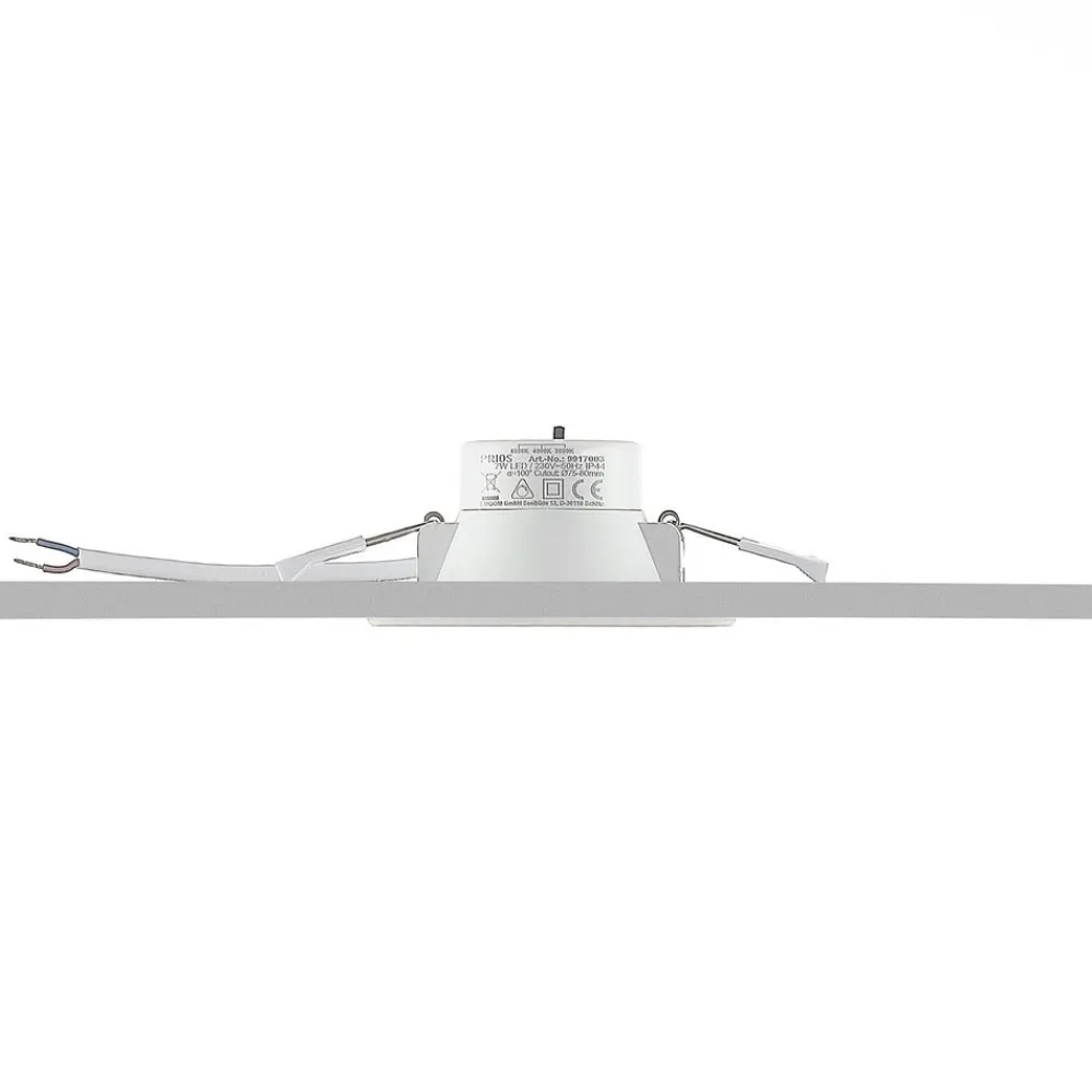 Hvit LED innfelt spotlight Rida i rund form, lysfarge kan justeres før installasjon via DIP-bryter, IP44 Rida scorer med god funksjonalitet og er en lyskilde til mange formål, uansett om du vil bruke LED-innfellingslampen privat eller kommersielt. Armaturhuset er rundt og hvitt, noe som gjør det usedvanlig enkelt og tidløst, noe som taler for den allsidige bruken. Takket være den brede spredningsvinkelen kan et rom belyses over et større område, men for større rom anbefales det likevel å bruke flere armaturer for å oppnå optimalt lysresultat. Den høye kapslingsgraden betyr at LED innfelt spot er godt beskyttet mot fukt og fuktighet, og kan derfor uten å nøle også brukes på bad eller andre fuktige rom. Du må først bestemme deg for lysfarge under installasjonen, deretter kan du velge en av tre fargetemperaturer via en DIP-bryter og deretter installere armaturen. Rida kan også dimmes eksternt hvis det finnes en tilsvarende dimmer via husinstallasjonen og kan brukes. The brightness of the permanently installed LEDs can then be adjusted as required – IP44 protection rating for use in damp rooms – Light colour can be set via DIP switch before installation – Wide beam angle of 100°