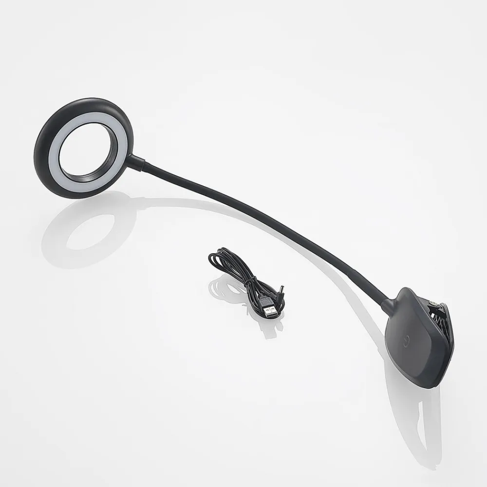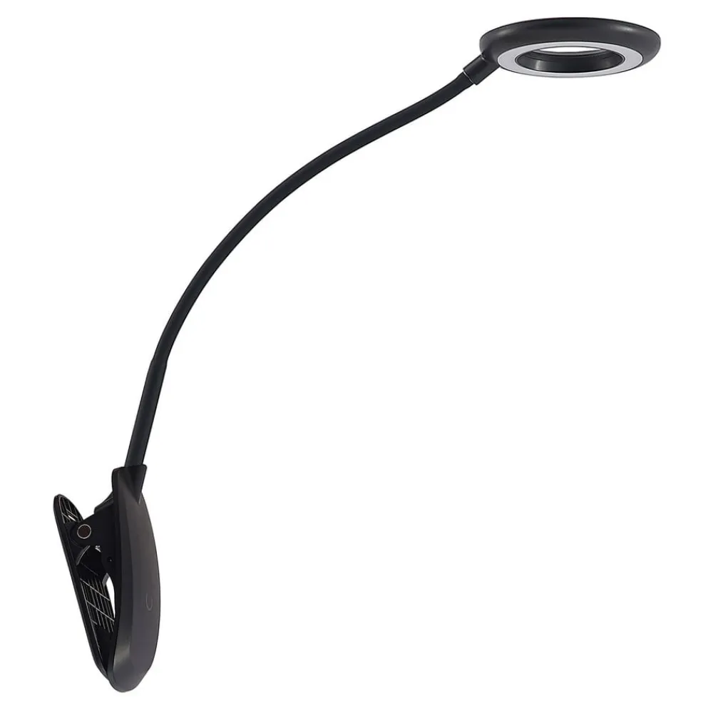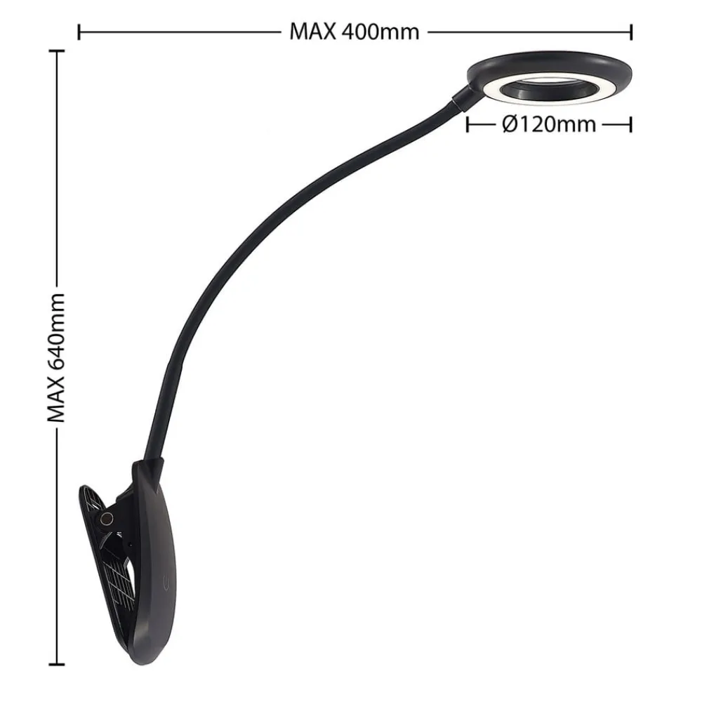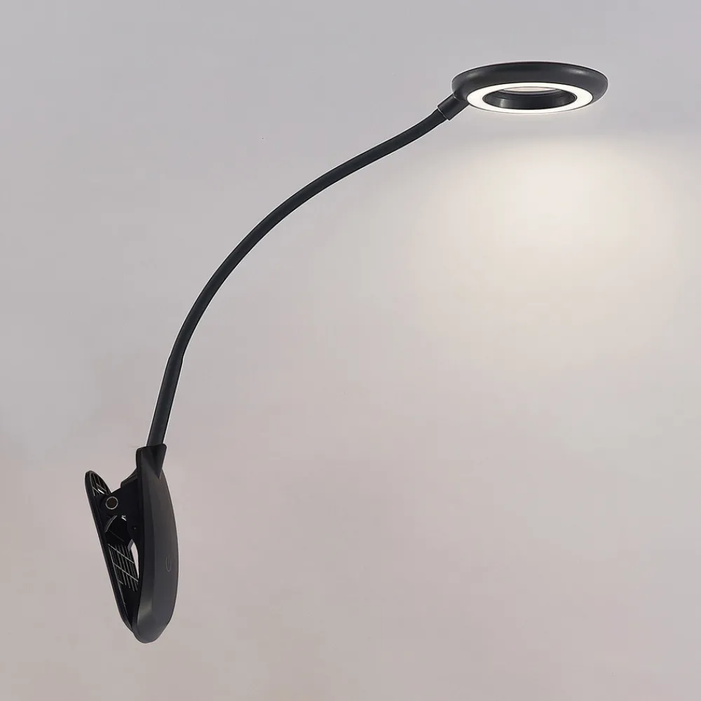 Prios LED-klemmelampe Harumi, svart, oppladbart batteri, USB, 51 cm
