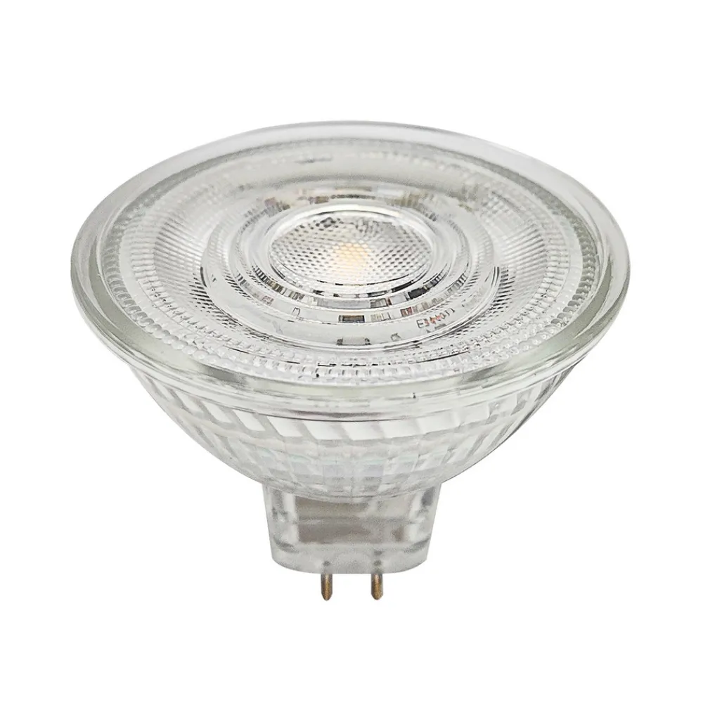 GU5.3 4,9W LED-reflektor i glass, transparent Denne LED-reflektoren passer til mange armaturer med GU5.3-sokkel. Den er laget av glass og kan brukes fleksibelt takket være det transparente fargedesignet – ikke dimbar – 4,9 W – 500 lumen – 36° avstrålingsvinkel