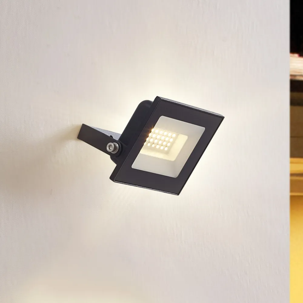 Svart LED-veggspotlight Maikel med kapslingsgrad IP65 Denne utendørs veggspotten i svart aluminium er en elegant og funksjonell måte å lyse opp uteområdene dine på. Med fastmonterte LED-lamper gir den en kraftig belysning som både er funksjonell og estetisk tiltalende. Modulen har en fargetemperatur på 3 000 K. Dette gir en behagelig, hvit belysning som er perfekt for utendørs bruk. Utendørs spoten er enkel å installere og har IP65-beskyttelse, noe som beskytter den mot regn og andre værforhold. Den er ideell for bruk i hager, oppkjørsler, uteplasser eller andre uteområder som krever ekstra belysning. Alt i alt er denne utendørs veggspotlighten i svart aluminium et godt valg for alle som er ute etter en funksjonell og stilig belysningsløsning utendørs.