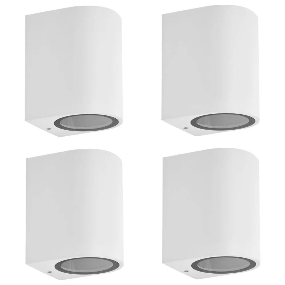 Hvit utendørs vegglampe Tetje med enkel karakter i aluminium i et praktisk sett med 4 stk. Tetje kombinerer en enkel design med en viss robusthet. Den utendørs vegglampen har en kompakt, sylindrisk form og kommer i en hvit farge. Den er ganske iøynefallende og integreres lett i husets arkitektoniske stil. Kapslingsgraden IP65 gjør den støvtett og beskytter den mot vannstråler, noe som gjør den til den perfekte følgesvenn for uteområder. Den utendørs vegglampen Tetje er laget av aluminium og kan utstyres med GU10 lyskilder. Den leveres også i et praktisk sett med 4 stk.
