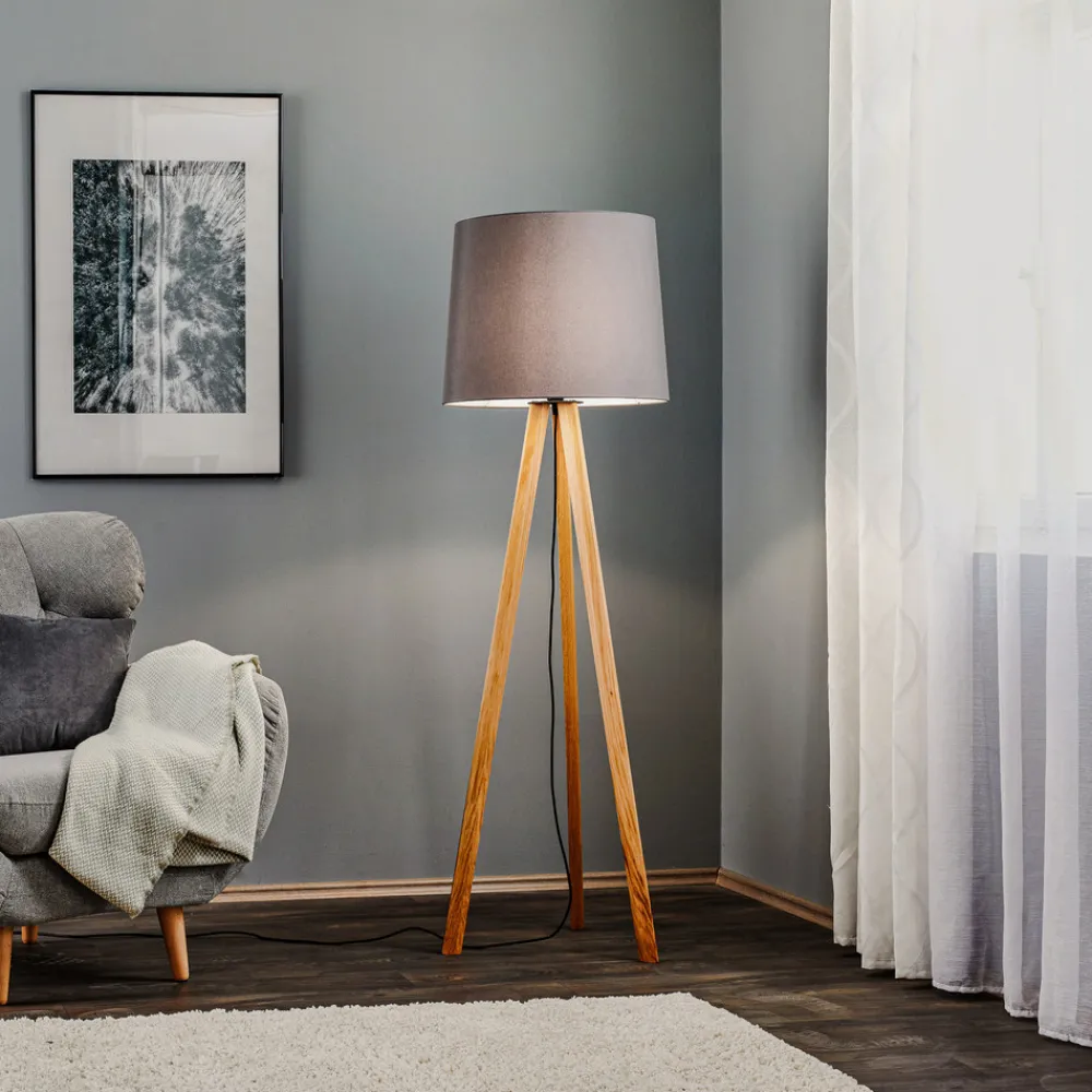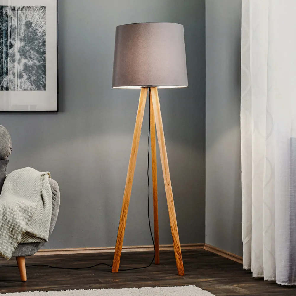 Quitani-gulvlampe Alos, eik, chintz grafitt, stativ