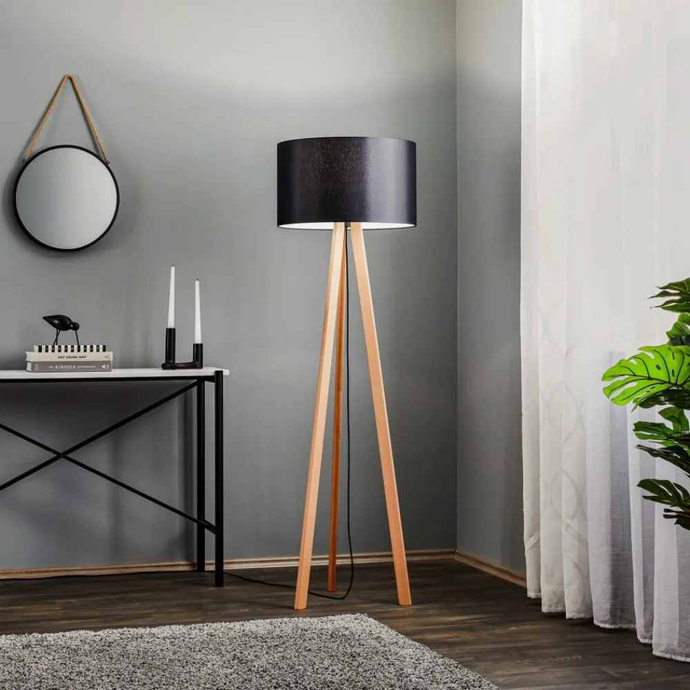 Quitani -gulvlampe Arim, bøk, svart chintz, stativ| Gulvlamper