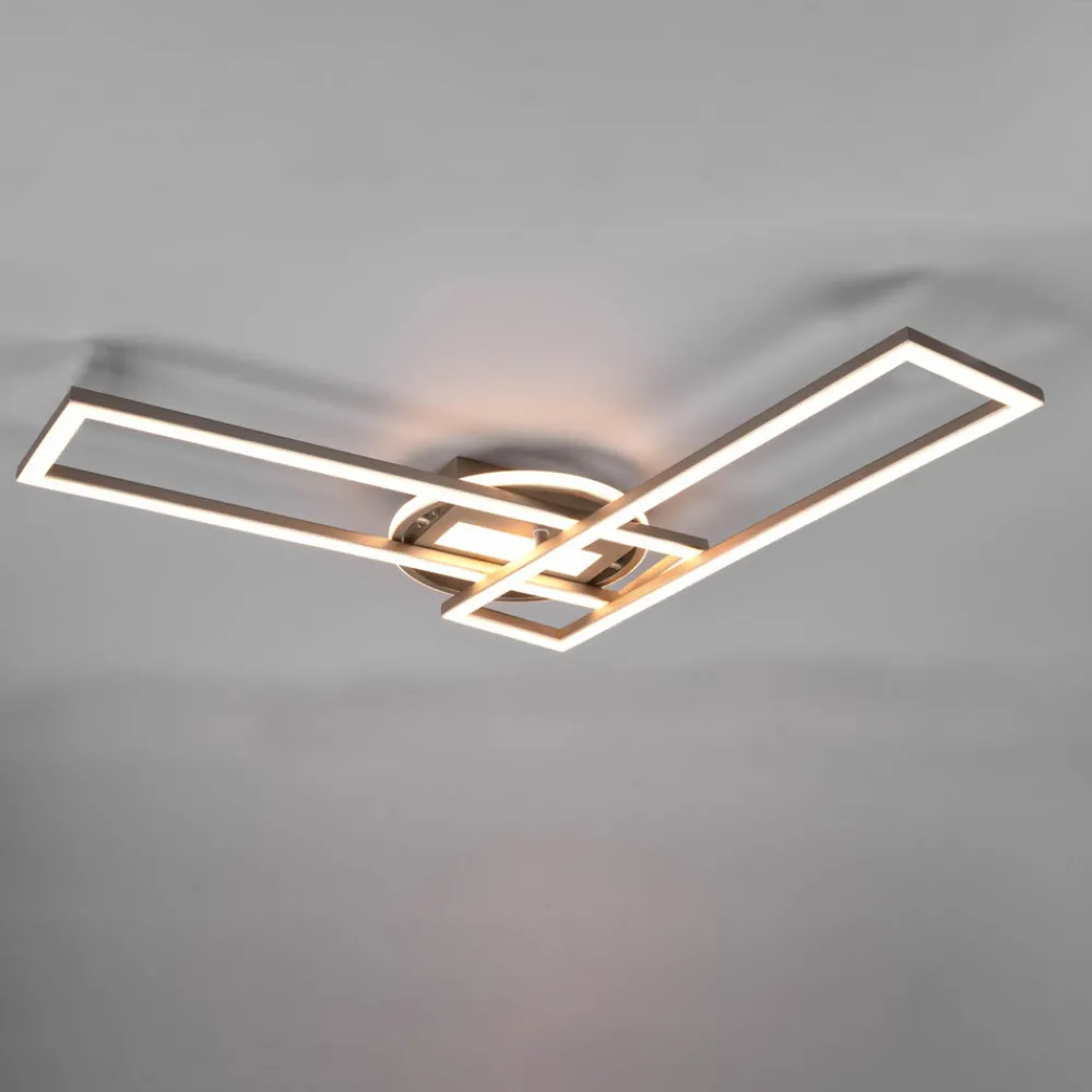 Twister LED-taklampen har fire seksjoner med integrerte LED-er – et rektangel under kalesjen, en ring som går rundt og to rektangulære rammer. Den nederste kan dreies horisontalt, slik at utformingen av Twister-taklampen alltid kan justeres på nytt. Det siste gjelder også lyset; Med den medfølgende fjernkontrollen kan Twister dimmes og lysfargen kan justeres fra varmhvitt til dagslys, slik at riktig belysning er tilgjengelig for nesten enhver situasjon. Etter at den er slått på igjen, aktiveres den sist valgte innstillingen på nytt. Dimming i tre lysstyrkenivåer (100 %, 50 %, 25 %) er også mulig med en hvilken som helst vanlig veggbryter.