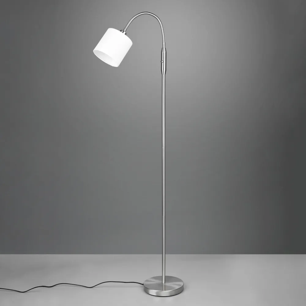Tommy gulvlampe, nikkel/hvit, høyde 130 cm, metall/stoff