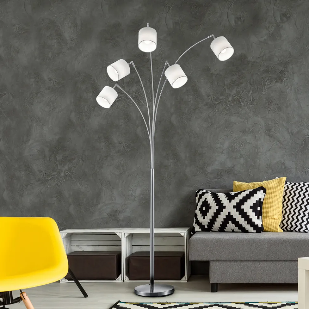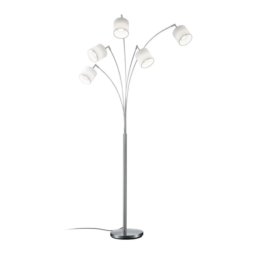 Tommy gulvlampe, nikkel/hvit, høyde 200 cm, 5-lys, stoff
