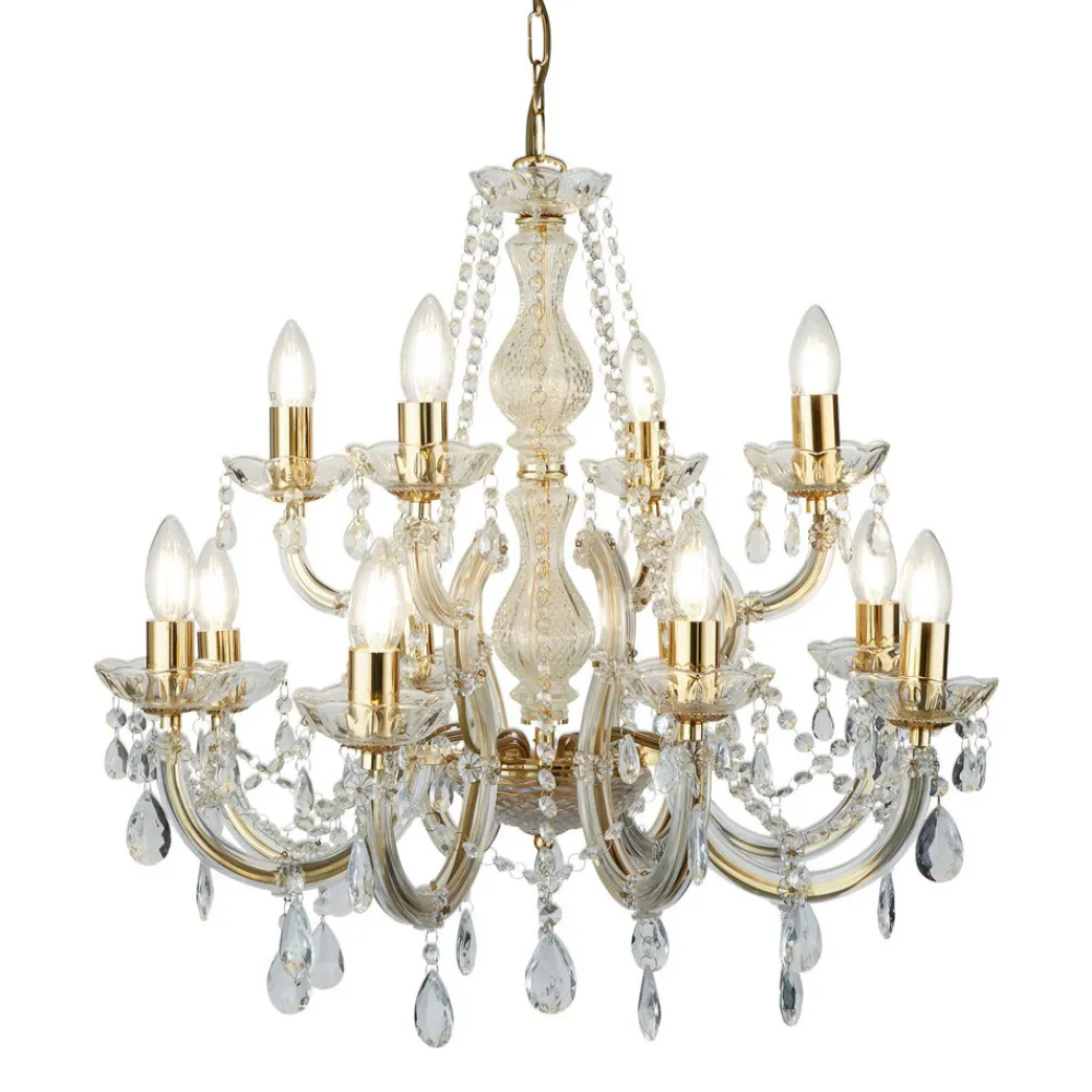 Lysekronen MARIE THERESE kommer i klassisk drakt. Lysekronen er utstyrt med utallige slipte glasskrystaller som henger dekorativt ned fra de elegante buede armene i akrylglass. Det polerte metallet i krom avrunder helhetsbildet. En Stavpendellys til glansfylte øyeblikk.
