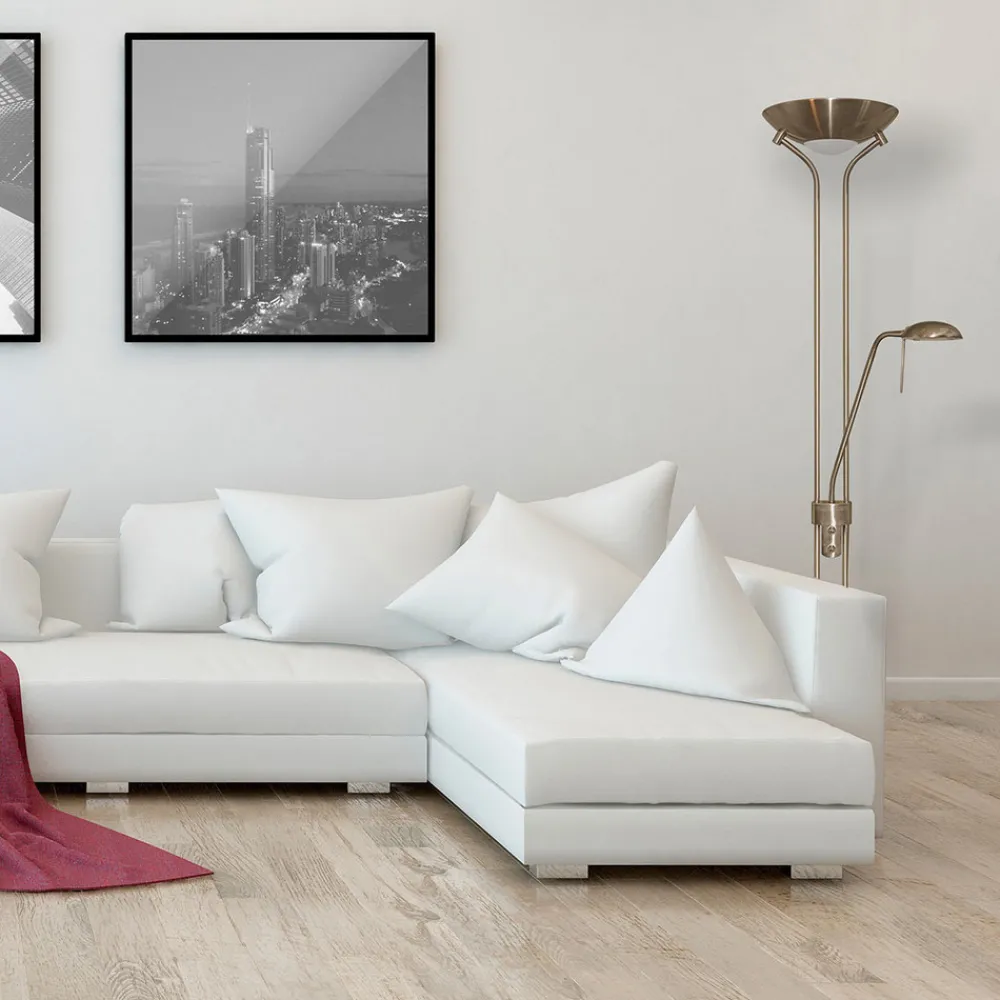 JERIK gulvlampe er en uplight og leselampe i ett JERIK uplight gir deg riktig leselampe uansett hvilket humør du er i eller hvilken aktivitet du er i gang med. På den ene siden er det den oppadrettede lyskasteren som gir et svært behagelig og indirekte lys, og på den andre siden er det den variable leselampen som gir målrettet belysning når du trenger det. En dimmer for justering av lysintensiteten er integrert, og de to bryterne er plassert på rammen.