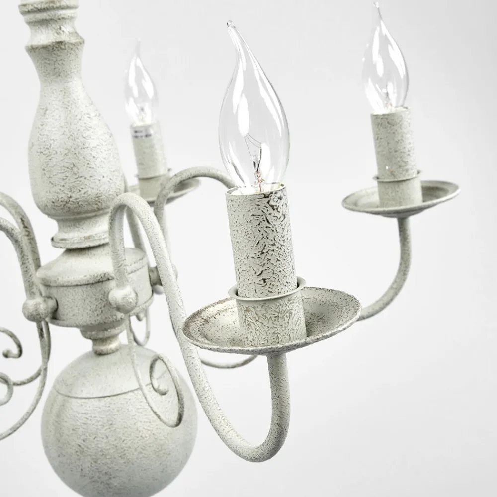 Den enkle fargegivningen står i kontrast til det morsomme designet på stålstativet hos den åttepunkts lysekronen Greythorne Dessuten har gråfargen et flott strukturmønster. Fem mignonpærer gir stemningsfull belysning og sørger for en behagelig atmosfære. Denne vakre lysekronen kan kombineres med forskjellige bostiler og tar seg godt ut overalt, enten den brukes som generell belysning i stuen eller skal iscenesette en stor gang.