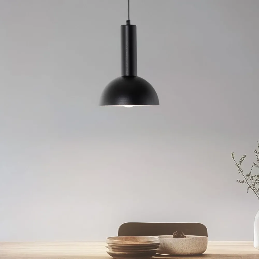Hengelampen Vitrum cupola S imponerer med sitt moderne design og bruken av høykvalitets pulverlakkert stål. Denne lampen passer perfekt inn i ulike oppholdsrom som spisestue og stue, og gir dem et elegant preg. Den halvrunde formen og den svarte fargen gir et tidløst utseende som setter accenter i både minimalistiske og klassiske interiørstiler.
