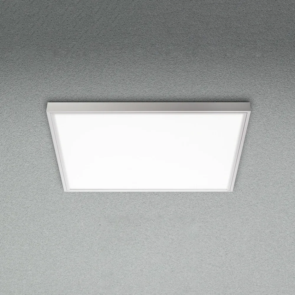 Godt lysutbytte: Fled utenpåliggende LED-panel i firkantet form inkludert driver, 100 lm/W, 36 W Det flate Fled utenpåliggende LED-panelet kommer i en firkantet form. Rammen, som bare er 2,8 cm høy, har også plass til driveren som følger med i leveransen. Dette betyr at Fled kan tas i bruk umiddelbart. Med et høyt lysutbytte på 100 lumen per watt gir dette panelet kraftig allmennbelysning. Avhengig av versjon imponerer Fled med behagelig varmhvitt eller universalhvit lys som egner seg godt til arbeid og lesing. Det finnes også ulike versjoner med forskjellige spredningsvinkler. En god avblendingsverdi (UGR<22 for 115° og UGR<19 for 90°-versjoner) avrunder dette utenpåliggende panelet.