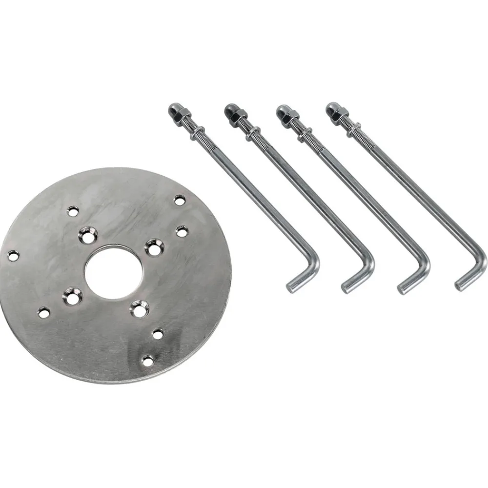 Betongankersett/tilbehør for montering av sokkel- og stibelysninger Passer til SLV VAP SLIM-serien (5504193-195) og andre lykter med samme bunnplate Leveringsomfang: – 1 monteringsplate – 4 betongankere, 4 skiver, 4 hylsmuttere
