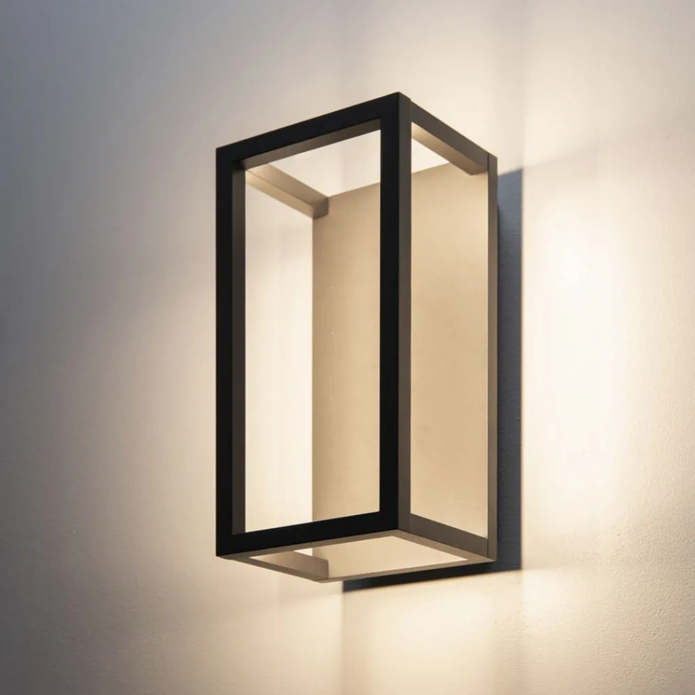 Quadrulo LED utendørs vegglampe – åpen kubusform i antrasitt, indirekte lysfordeling Enkel og moderne: Quadrulo LED utendørs vegglampe imponerer med sin åpne, kubiske form og sitt indirekte lys. LED-lampene er integrert på baksiden av aluminiumsstagene, og det varmhvite lyset reflekteres i omgivelsene av bunnplaten og veggen rundt – Kapslingsgrad: IP55 – Slagfasthet: IK04 – Omgivelsestemperatur under drift: – 20 °C til + 40 °C