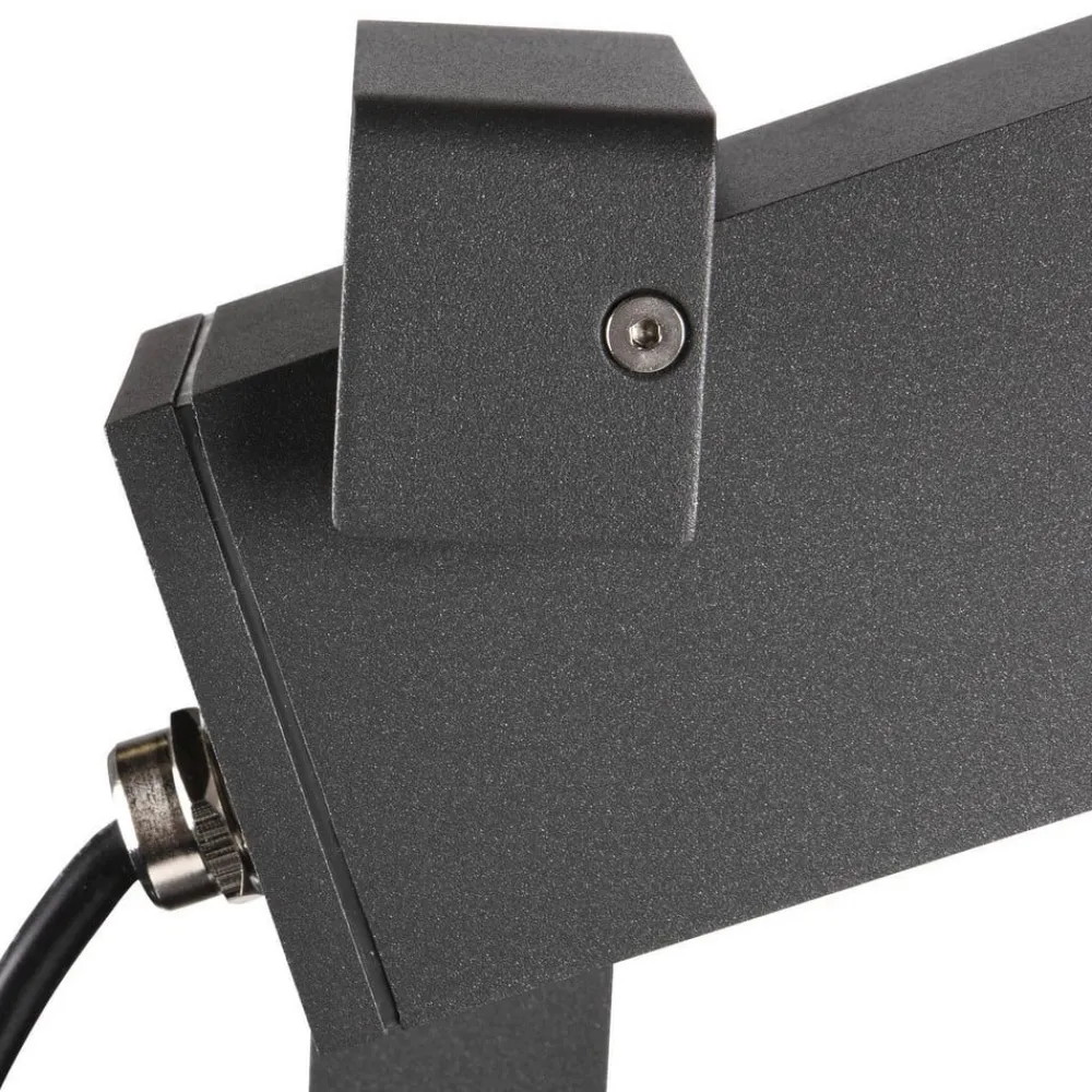 Variabel innretting – Theo Bracket jordspydbelysning Theo Bracket er en moderne jordspydbelysning som kan brukes i både private og kommersielle bygninger. Den er laget av aluminium av høy kvalitet, og det antrasittfargede utseendet gjør den svært diskret og lite iøynefallende. Takket være den vinklede lampeskjermen og det dreibare leddet kan lyset rettes etter behov, slik at området som skal belyses blir perfekt iscenesatt. Theo Bracket leveres med en 150 cm lang kabel med Schuko-kontakt. IP65 beskytter armaturen mot alle værforhold.