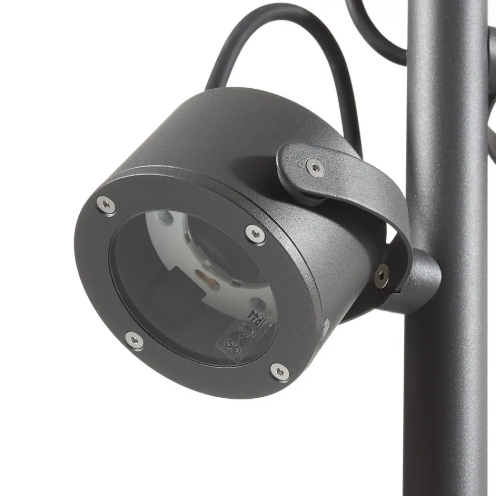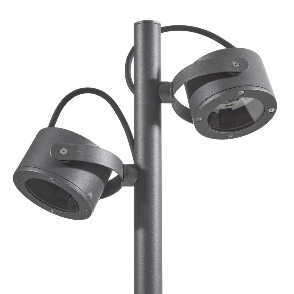 Sitra veilampe i aluminium, dobbeltstrålende Denne eksklusive veilampen er laget av aluminium, og pærene er beskyttet av klart glass. Denne veilampen passer godt inn i et moderne belysningsmiljø og gir trygg belysning i mørket. Begge spotlightene er justerbare, slik at du kan belyse og fremheve bestemte objekter. Et jordspyd kan kjøpes som tilleggsutstyr for å gjøre plasseringen av lyset enda mer fleksibel.