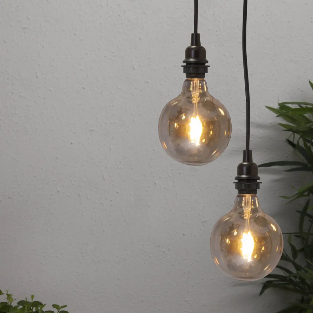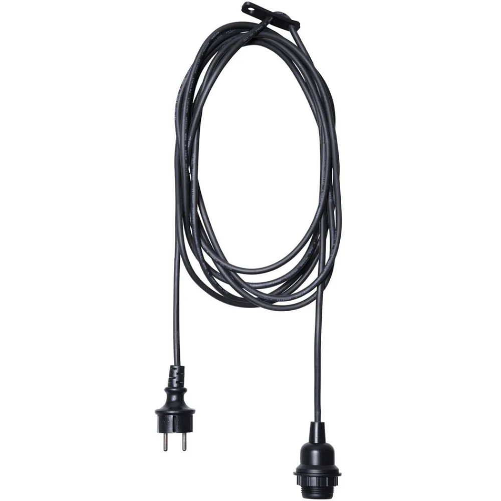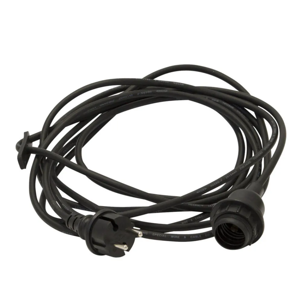 E27- fatning Ute er utstyrt med en lang kabel. En SchuKo-plugg er festet til enden av kabelen. På grunn av sin lengde er kabelen ideell til dekorative formål og som hengende lampe for utendørs bruk.