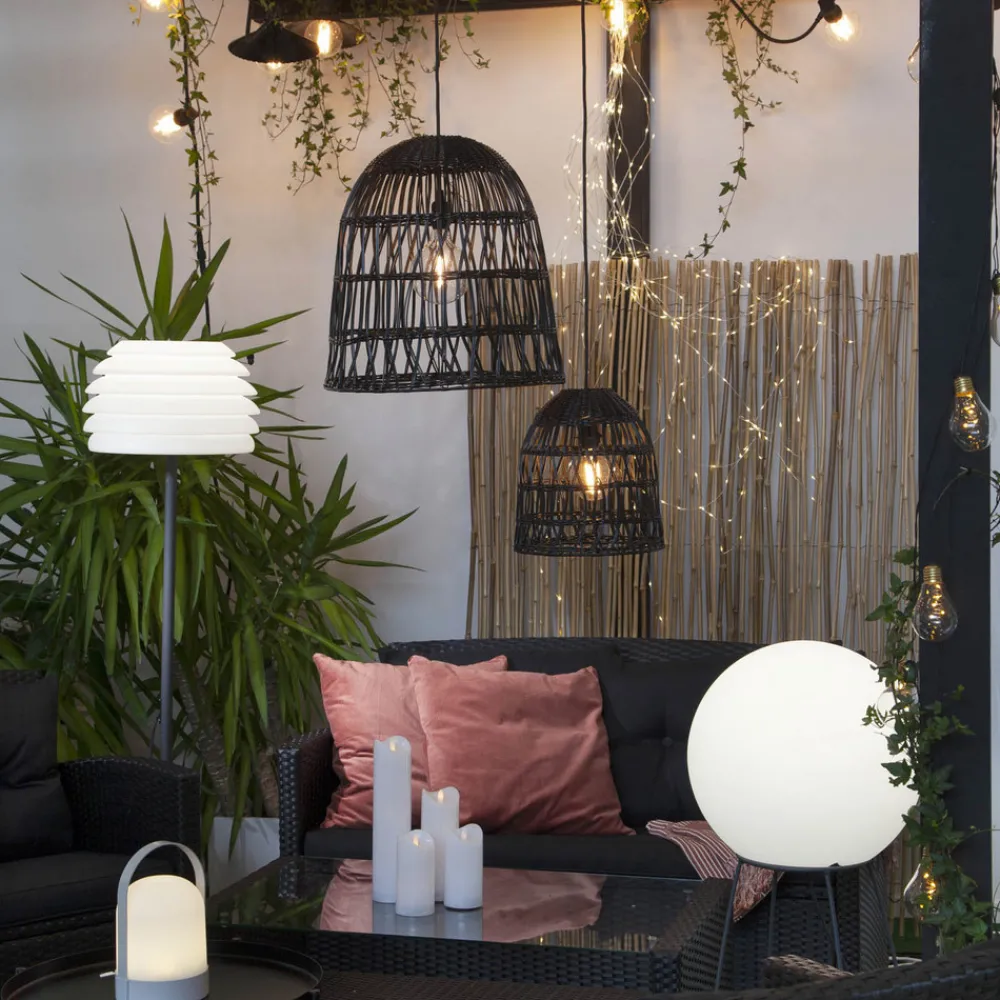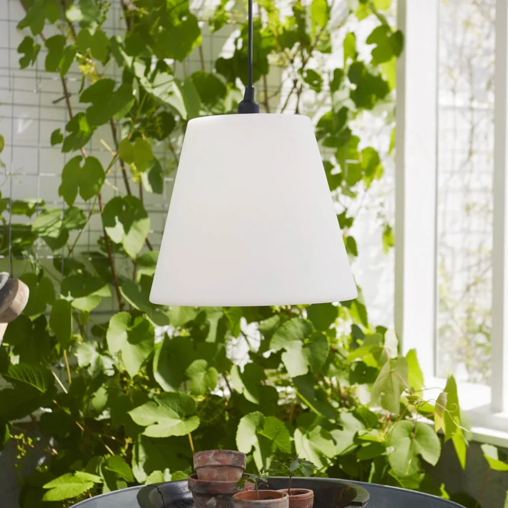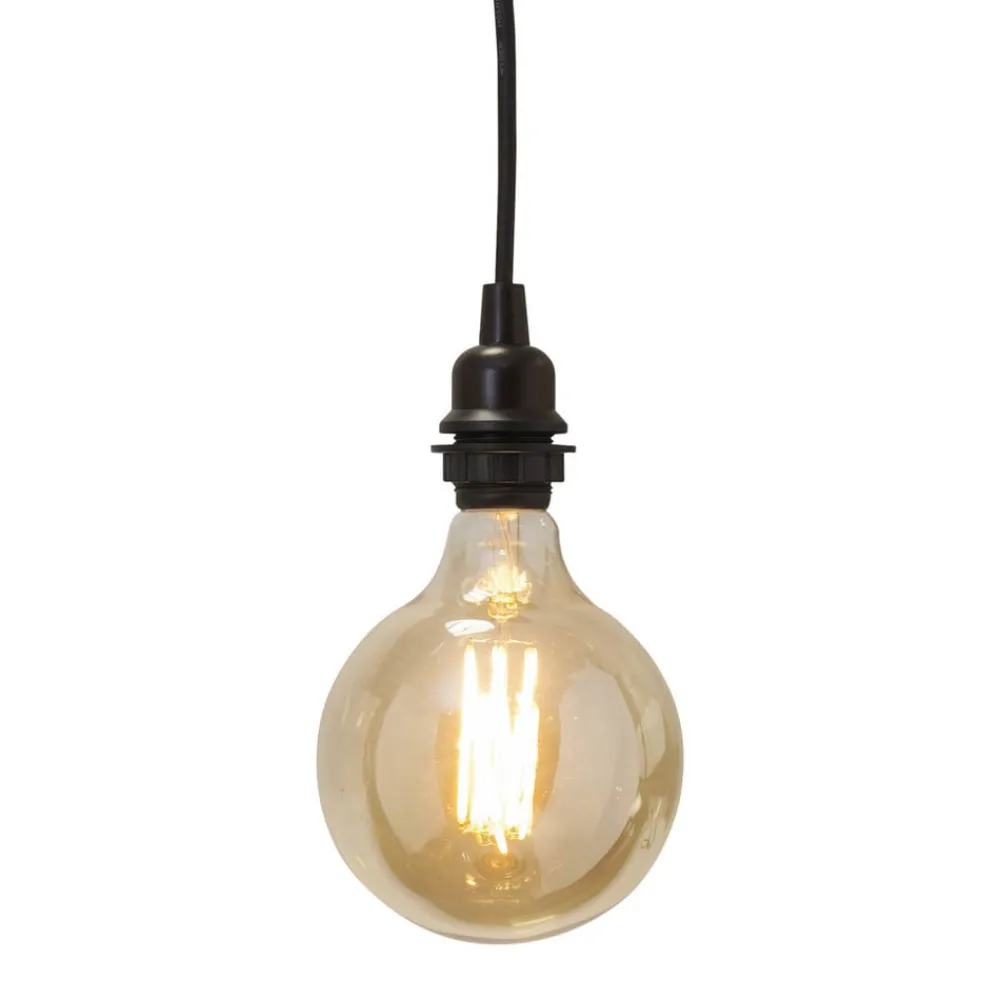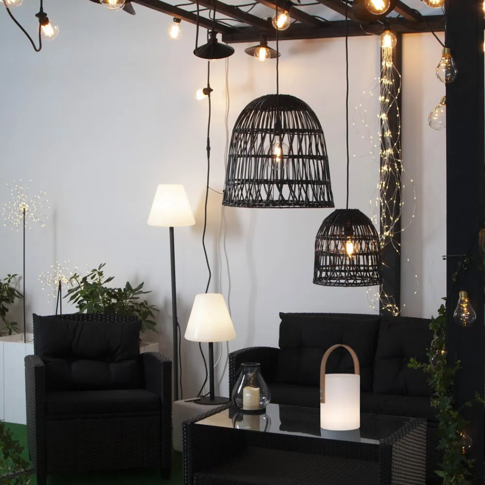 E27- fatning Ute er utstyrt med en lang kabel. En SchuKo-plugg er festet til enden av kabelen. På grunn av sin lengde er kabelen ideell til dekorative formål og som hengende lampe for utendørs bruk.