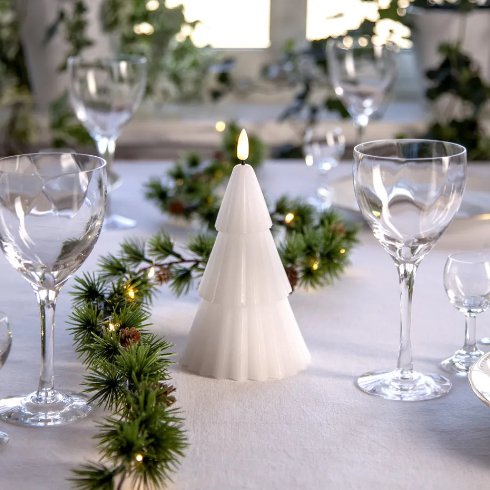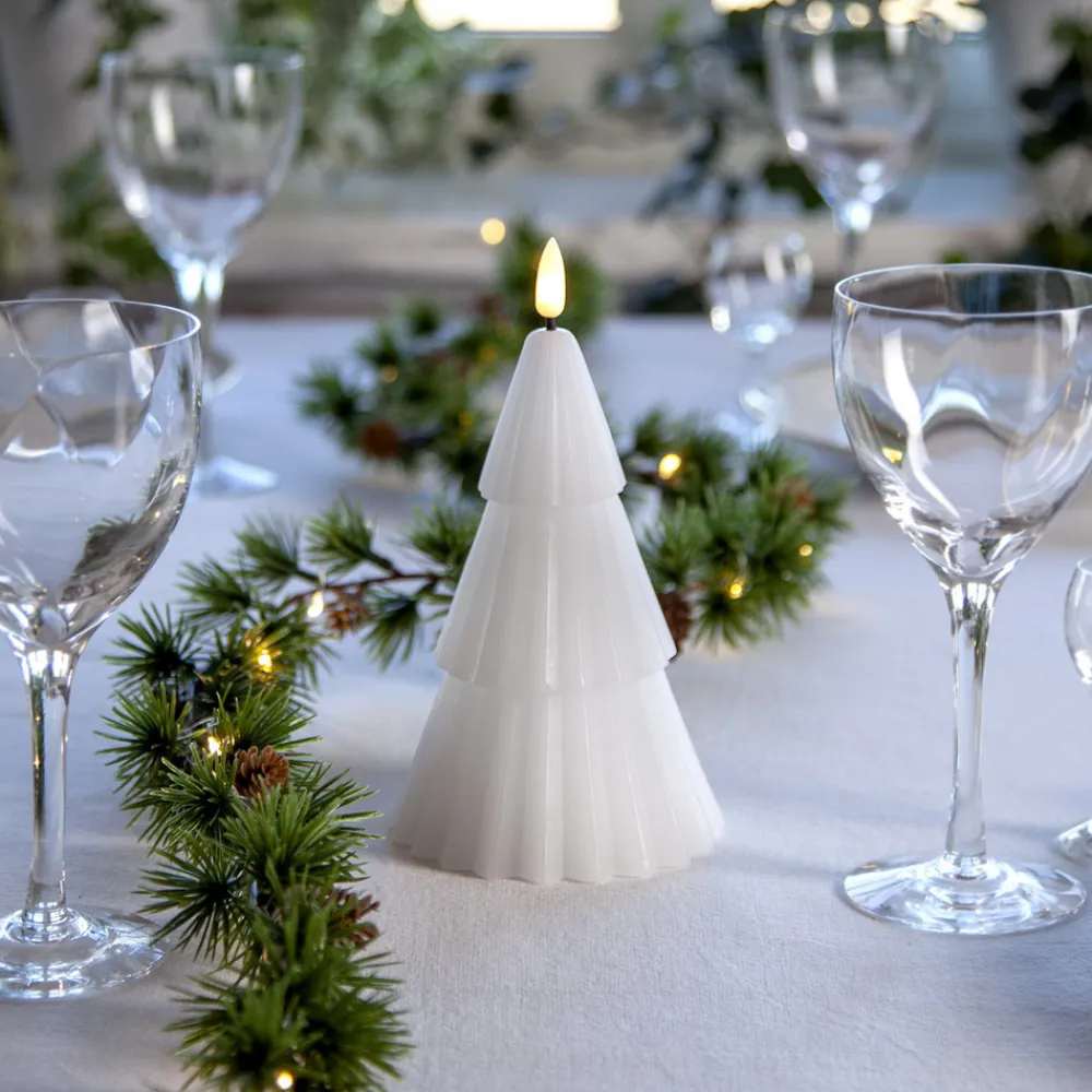 Batteridrevet LED-dekorasjonslys Flamme Grany av voks for innendørs bruk – med timerfunksjon LED-lyset Flamme Grany er et praktisk valg til julepynt i hjemmet. Dekorasjonslyset er laget av ekte voks og utformet i den stiliserte formen til et bartre. Takket være batteridriften kan det plasseres hvor som helst. Det kan slås på automatisk ved hjelp av en timer (6 t på, 18 t av).