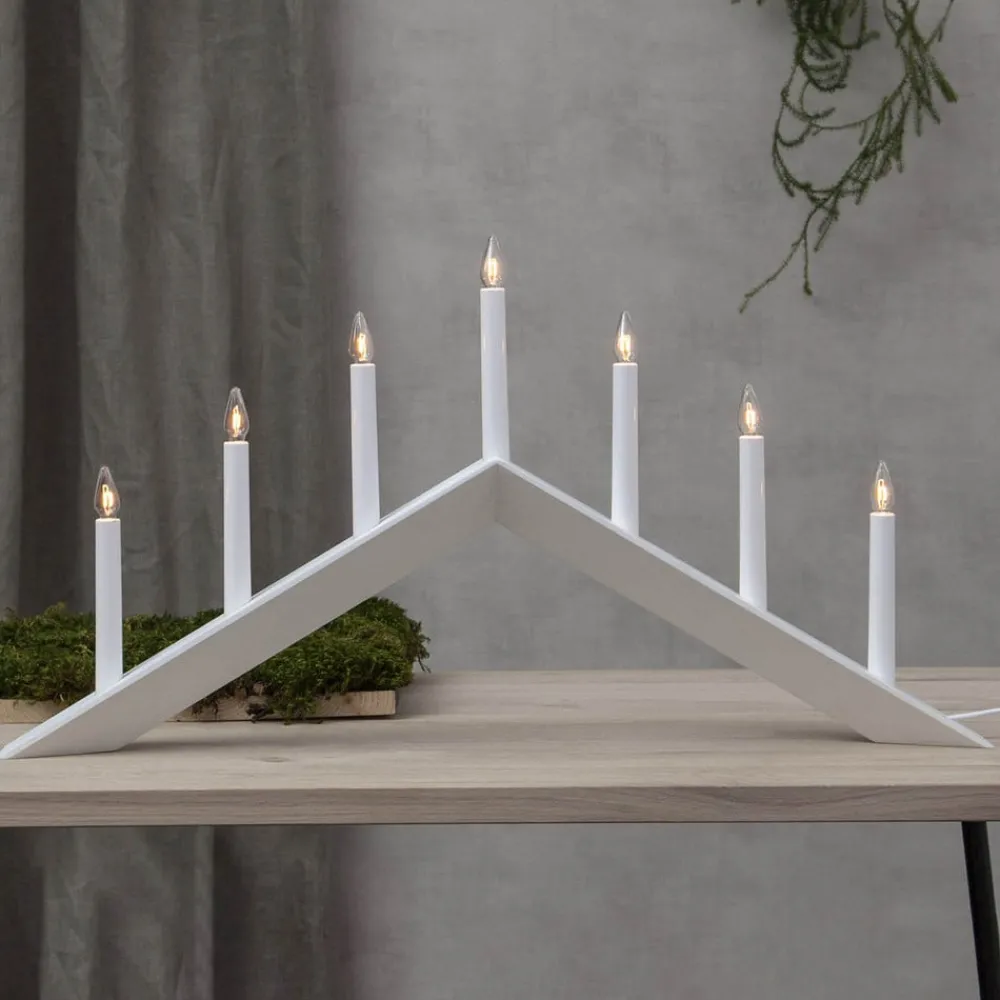 STAR TRADING Lysestake Pil, flat, 7-flamme, hvit| Julebelysning