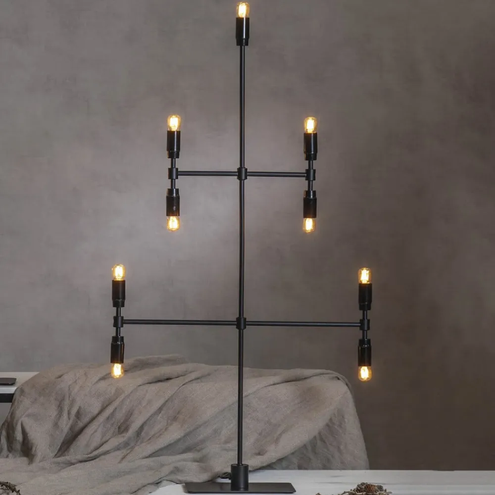 Lysestake Twice, svart, 9 lyskilder, 91 cm