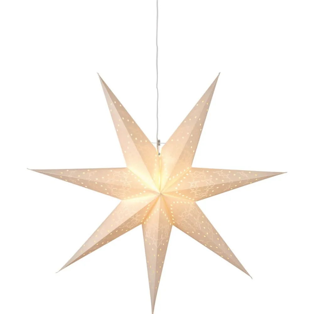 Sensy Star, med sin syvkantede stjerne av kremfarget papir, egner seg meget godt til å pynte til jul i en moderne stue på en stilig og minimalistisk måte. Kombinasjonen av materialet papir og den kremhvite fargen ser meget stilig ut, til og med når lampen er skrudd av. Og med det samme Sensy Star skrus på, gir den fra seg et vakkert lys som får hullmønsteret til å se fantastisk ut.