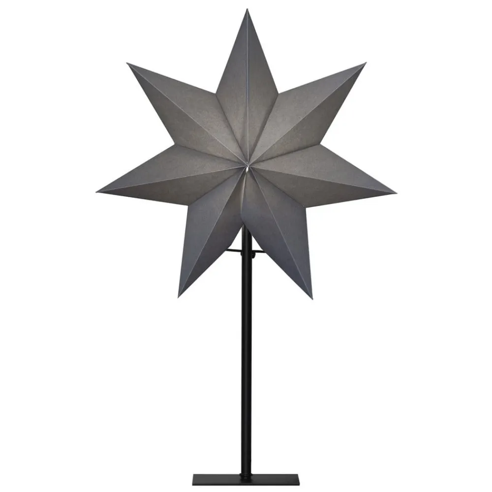 Høy, stående stjerne Ozen i grått papir Den stående stjernen Ozen, som er montert på en grålakkert metallramme, e…