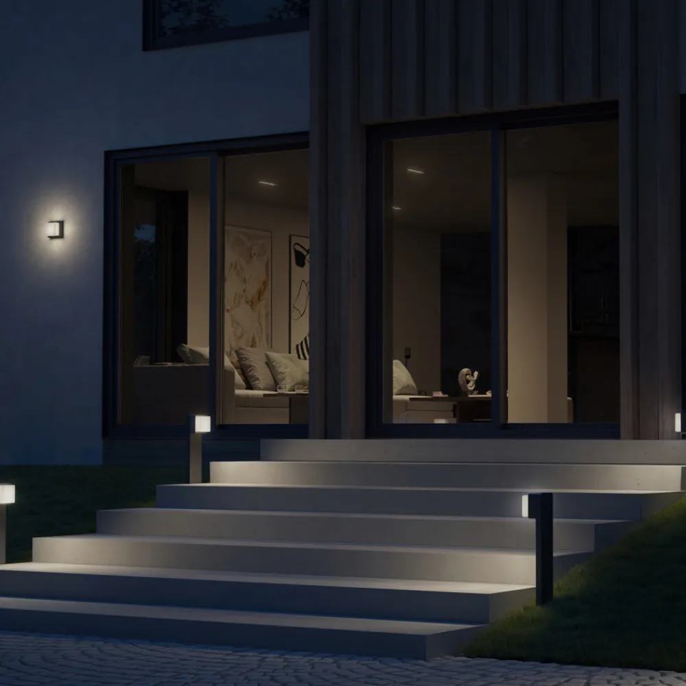 GL 85 C 900 veilys med Bluetooth-nettverk og bevegelsesdetektor GL 85 C 900 LED-veilys fra Steinel imponerer med sitt elegante og tidløse design, som på dyktig måte oppgraderer moderne uteområder. Takket være trådløst Bluetooth-nettverk og tilkoblingen til STEINEL Connect-appen, er idriftsettelse og innstilling av stilyset raskt og enkelt. Det er også integrert en bevegelsesdetektor som registrerer alle bevegelser innenfor en radius på fem meter. Takket være nabogruppefunksjonen kan innkjørsler allerede flankeres og trygt belyses med fremtidsrettet, varmhvitt lys. Dens IP44-beskyttelse gjør GL 85 C 900 motstandsdyktig mot vannsprut. – IP44 – Bluetooth-nettverk – Nabogruppefunksjon – Bevegelsesdetektor