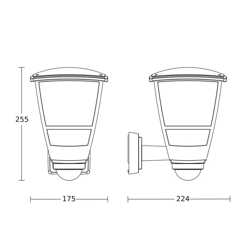 Utendørs vegglampe L 10 S i svart med bevegelsessensor Utelampen L 10 S fra STEINEL har en klassisk design og sofistikert funksjonalitet. Den lyktformede lampen i UV-bestandig plast er utstyrt med en E27-sokkel som kan utstyres med lyskilder på maksimalt 15 W. Refleksfolien i lyktens tak sørger for optimal belysning. Reflektorfolien i taket på lykten sørger for optimal belysning, mens den infrarøde sensoren med et registreringsområde på 180° og en rekkevidde på opptil 7,5 meter slår lyset på automatisk. Registreringsområdet og rekkevidden til sensoren kan begrenses individuelt ved hjelp av de medfølgende dekselklemmene – Lysstyrken kan justeres fra 2 til 2000 lux – Lysets varighet kan justeres fra 5 sekunder til 60 minutter