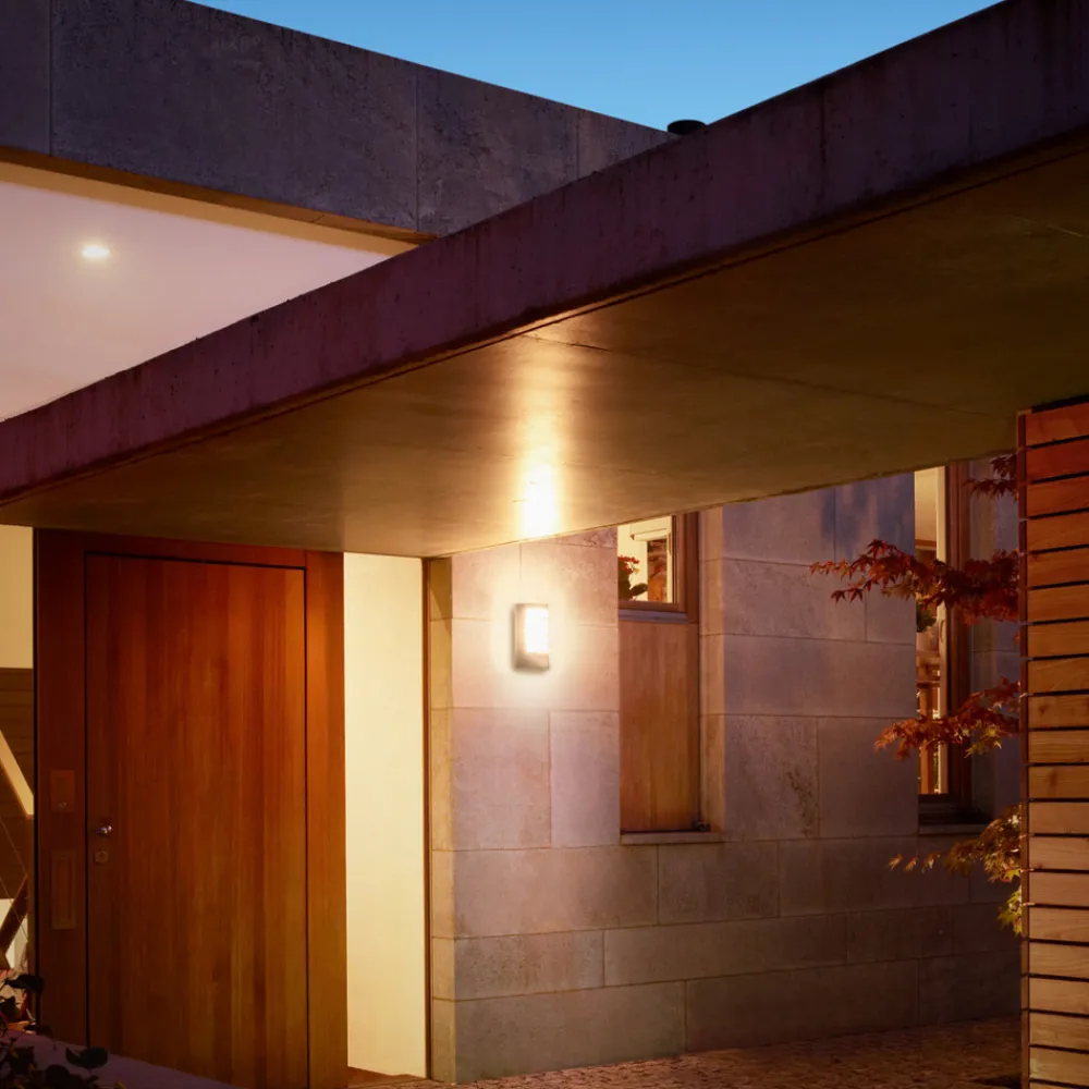 Moderne look – L 12 utendørs vegglampe med aluminiumsskjermDen tidløse og samtidig moderne L 12 utendørs vegglampen fra Steinel setter et visuelt preg på huset og gir en trygg og god belysning. Den er utstyrt med en E27-sokkel og en aluminiumsskjerm over plastskjermen. Som utendørsarmatur gir L 12 perfekt lys og trygghet i mørket i inngangspartier, garasjer eller på husvegger.- Monteringshøyde maks. 3 m